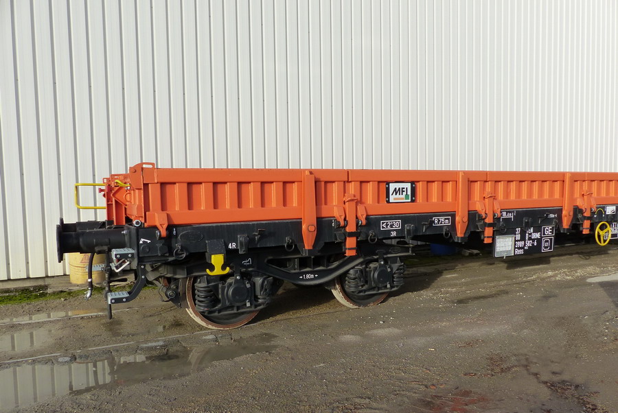 Voici le wagon 37 80 3989 582-6 Rens 192 C - TEN RIV D-ORME de la société On Rail Gmbh (Allemagne) pour la société de location de wagons M.F.I sa (Matériel Ferroviaire et Industriel) de Strasbourg qui est une société spécialisée dans l'achat-vente, la location,