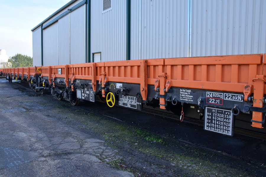 Voici le wagon 37 80 3989 584-2 Rens 192 C - TEN RIV D-ORME de la société On Rail Gmbh (Allemagne) pour la société de location de wagons M.F.I sa (Matériel Ferroviaire et Industriel) de Strasbourg qui est une société spécialisée dans l'achat-vente, la location,