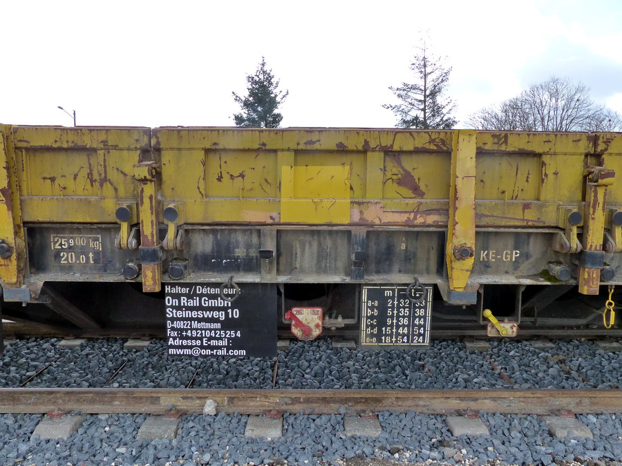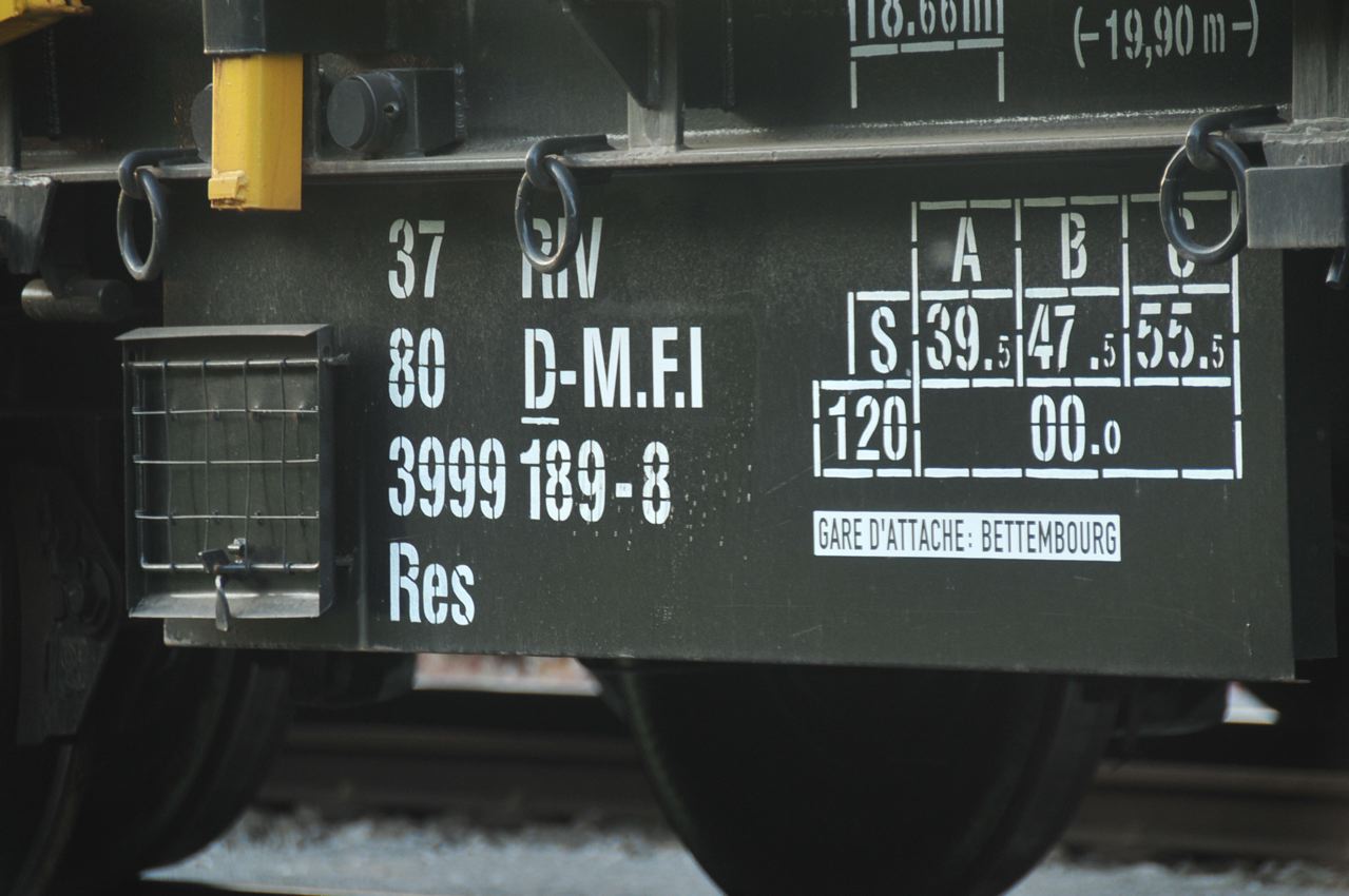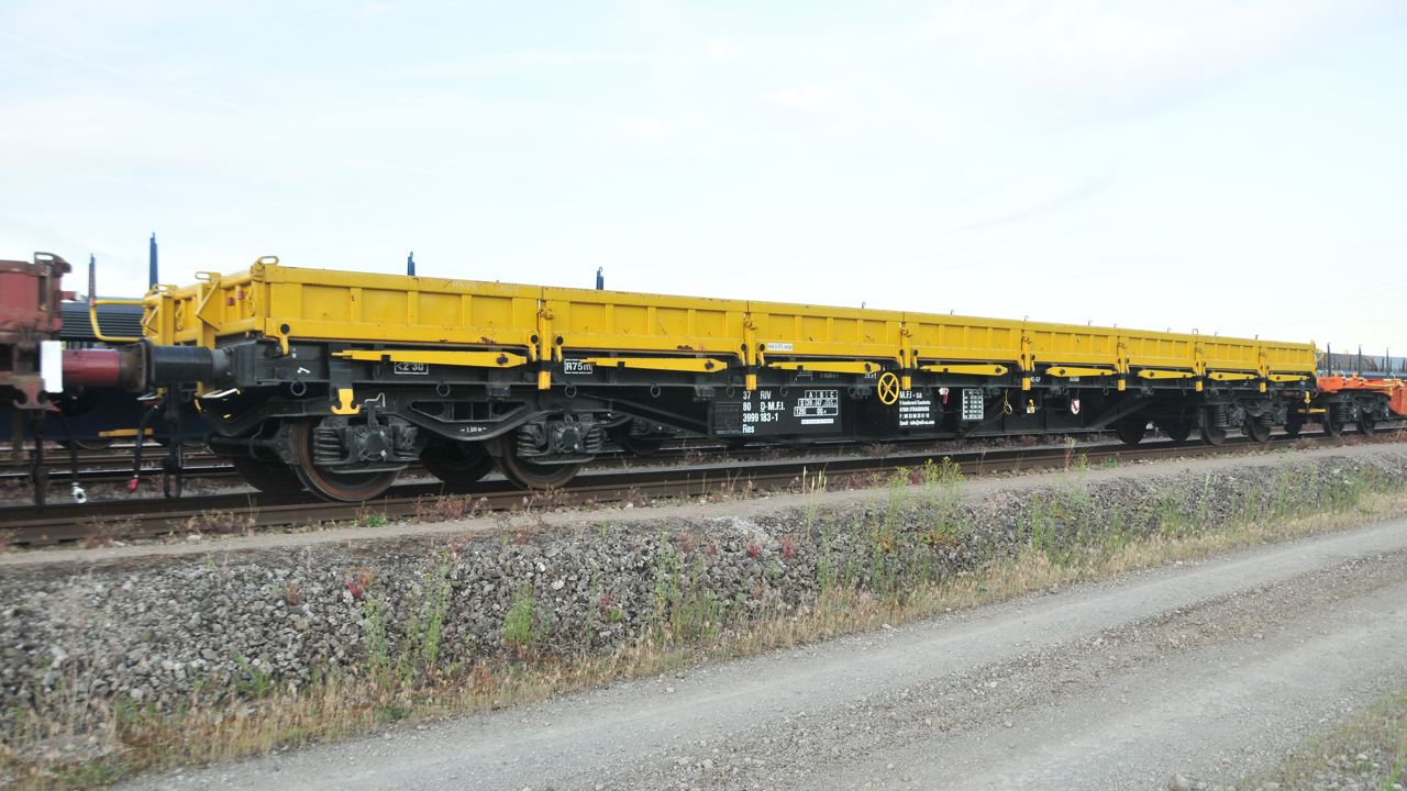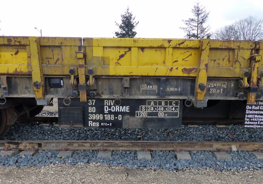 Voici le wagon plat 33 80 3999 188-0 Res RIV D-ORME de la société On Rail sur le site de Ferrotract à Saint Pierre des Corps