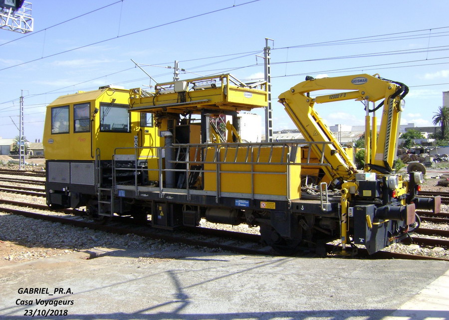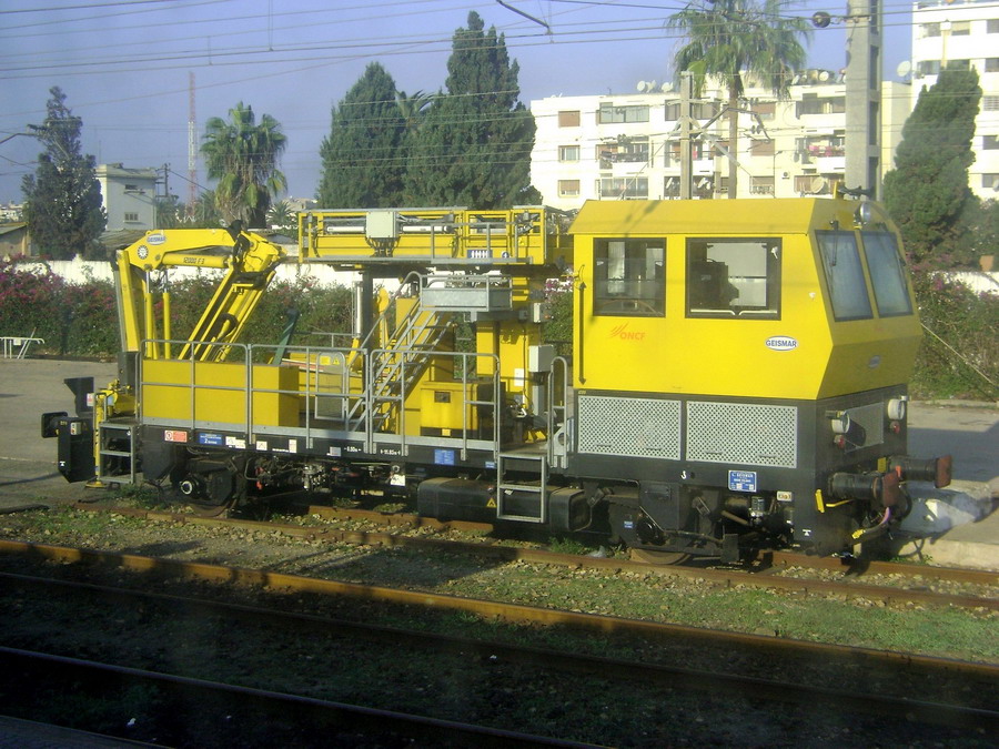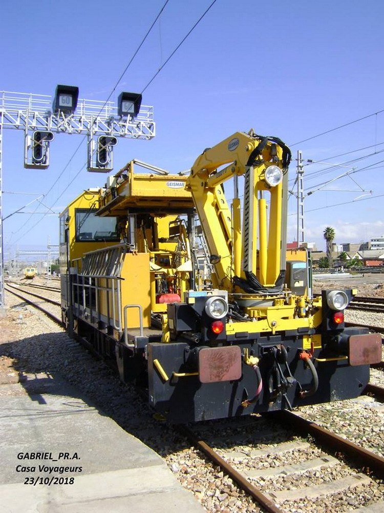 Voici la Draisine Geismar VMT 865 C GR n°1074 à Rabat Agdal le 20-11-2015 pour l'inspection des caténaires avec grue pour