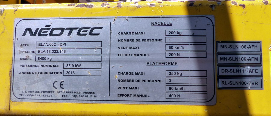 ELAN C2F NUMERO DE SERIE 16323146 SOUS AGREMENT DPI 14288