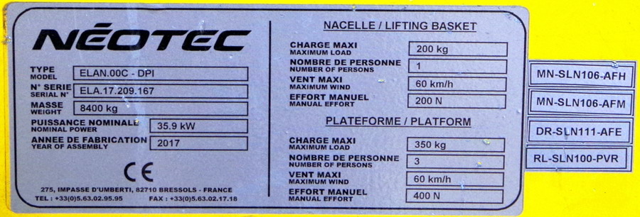NEOTEC ELAN 00C - DPI n°ELA.17.209.167 - 2017 - Agrément SNCF : DPI 14288 - DVF