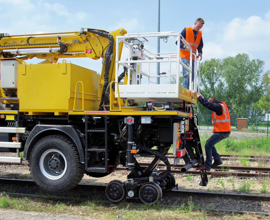 avec une démonstration de la nacelle et le désenrayage du camion Rail route