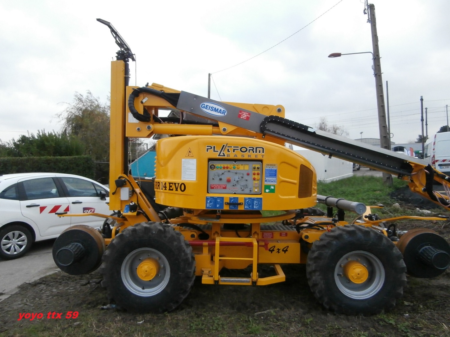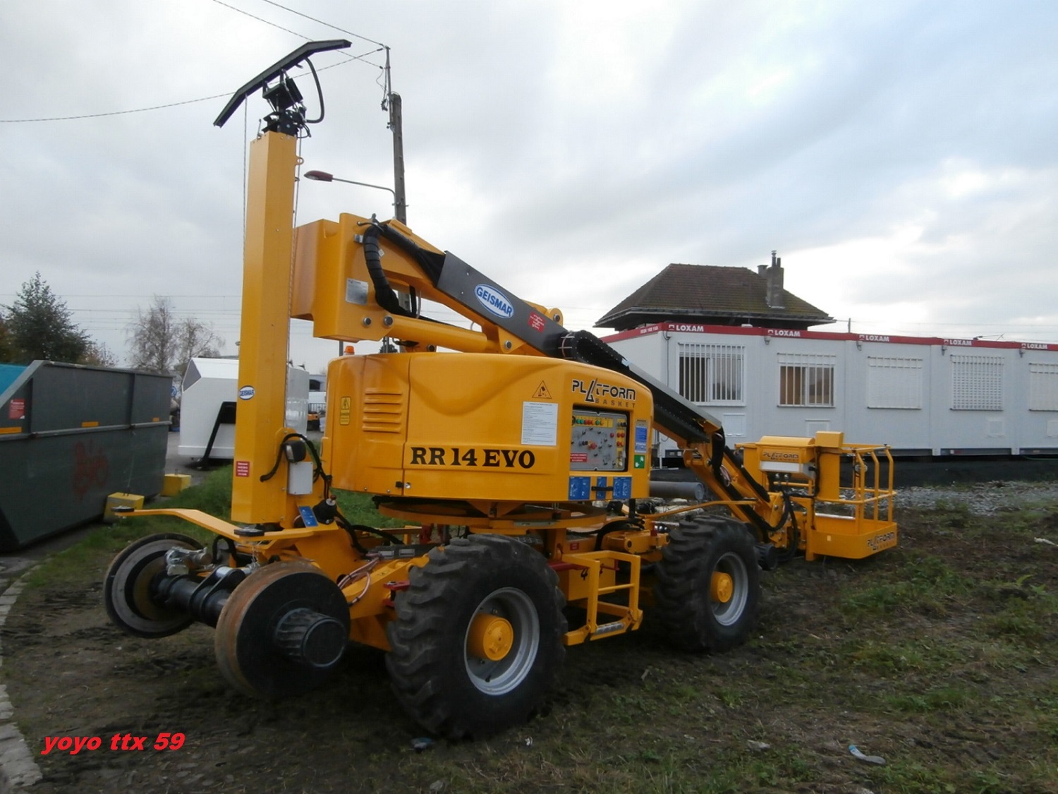 Cette nacelle était en essais pour le compte de Colas Rail sur le chantier de changement d'appareils de voies a Hazebrouck le 01/11/2014 .