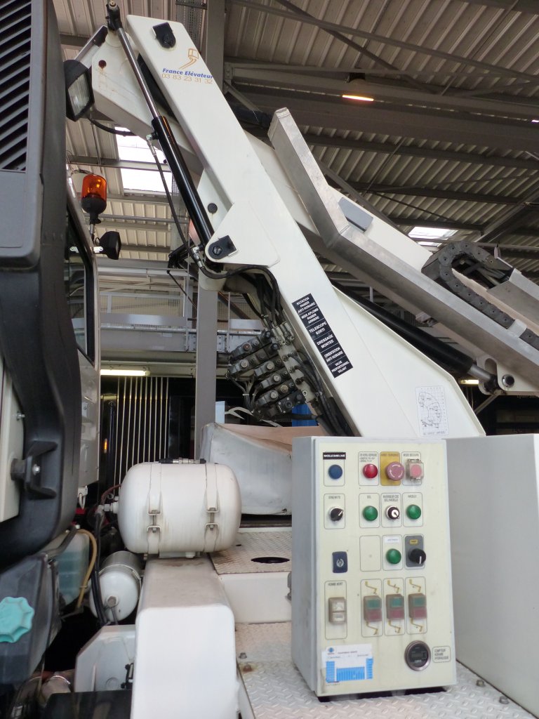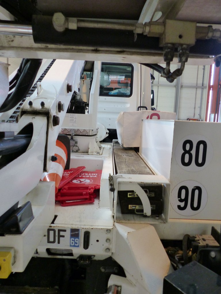 Il est équipé pour le soutien en cas de problème autre : outillage, groupe électrogène, grue Hiab 017T.