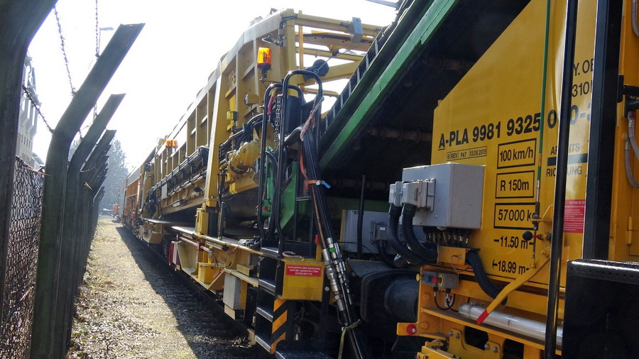 elle se trouve en gare de Saint Pölten en Autriche le 10-03-2018 avec la Bourreuse 09-4X E3 - 99 81 9123 015-2 - PLA