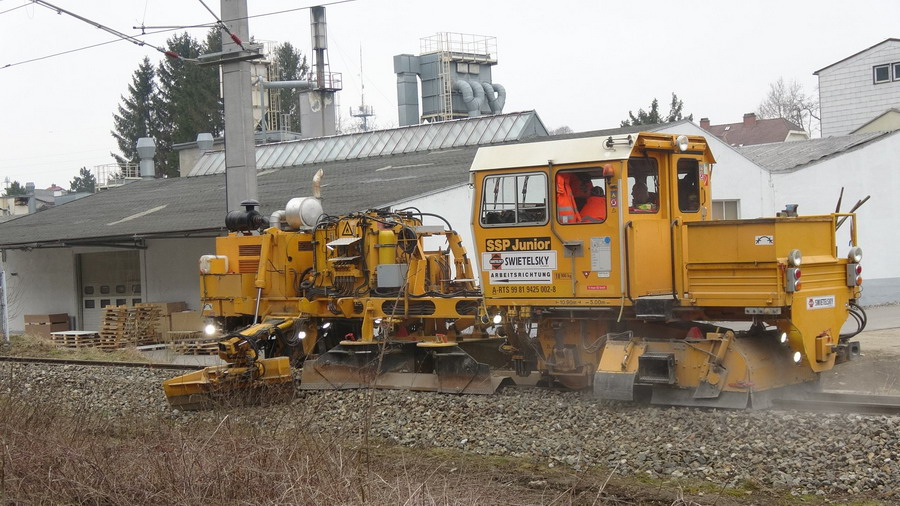 Voici la Régaleuse de Plasser & Theurer de type SSP Junior - 99 81 9425 002-8 A-RTS de la société SWIETELSKY