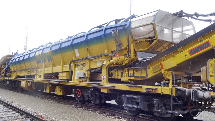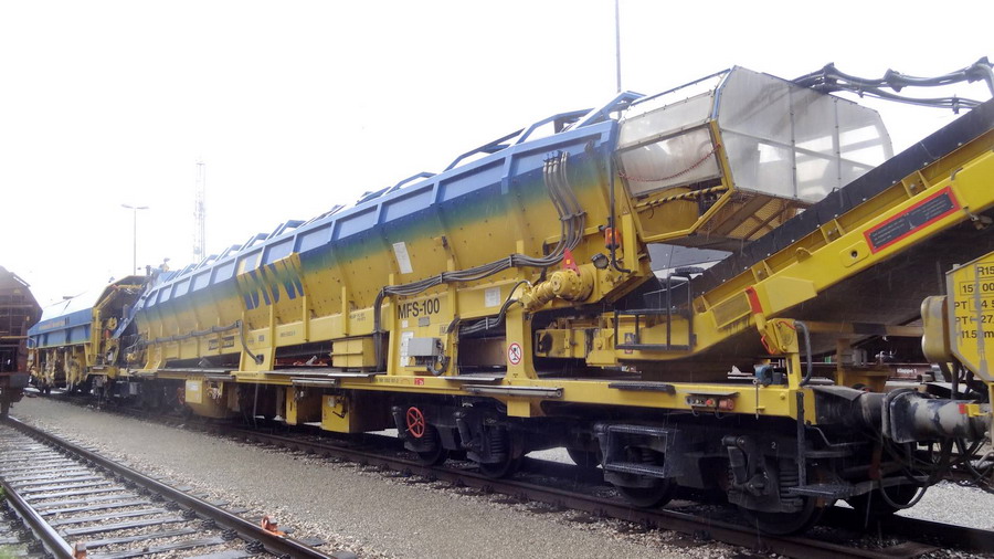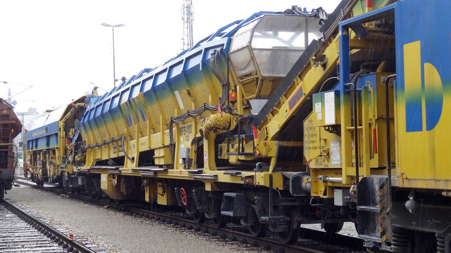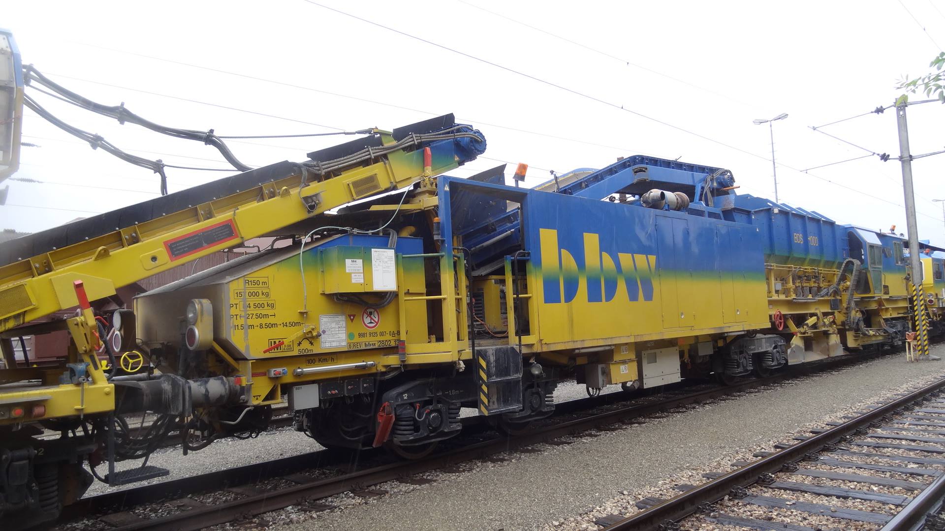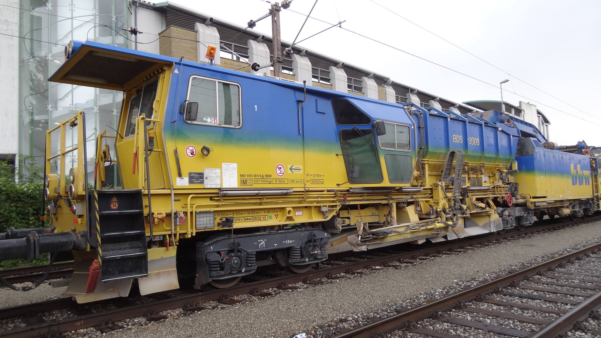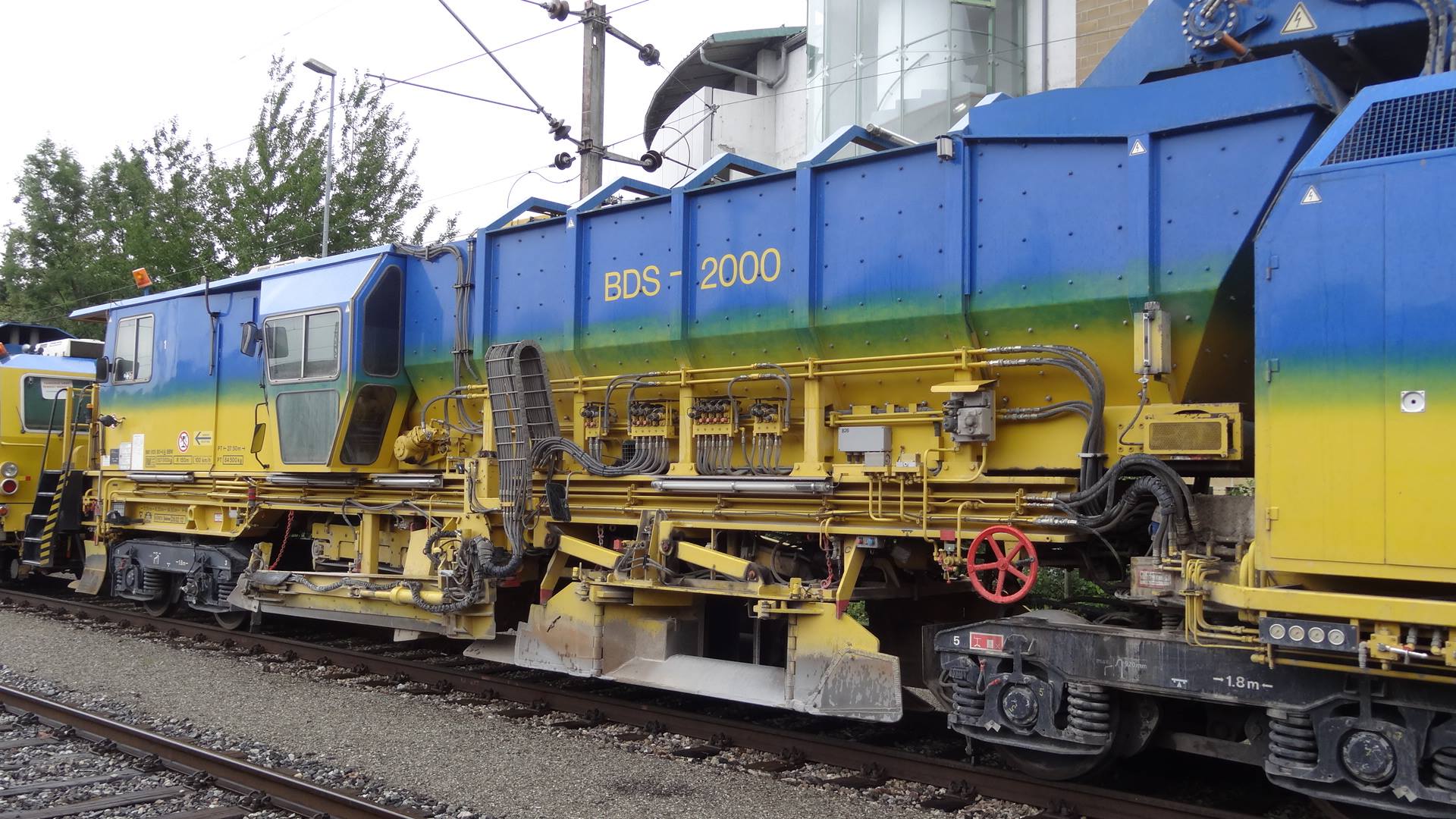 Voici une Régaleuse de Plasser & Theurer de type BDS 2000 - 99 87 9125 007-0 A-BBW (Bahnbau Wels (Rhomberg Sersa Rail