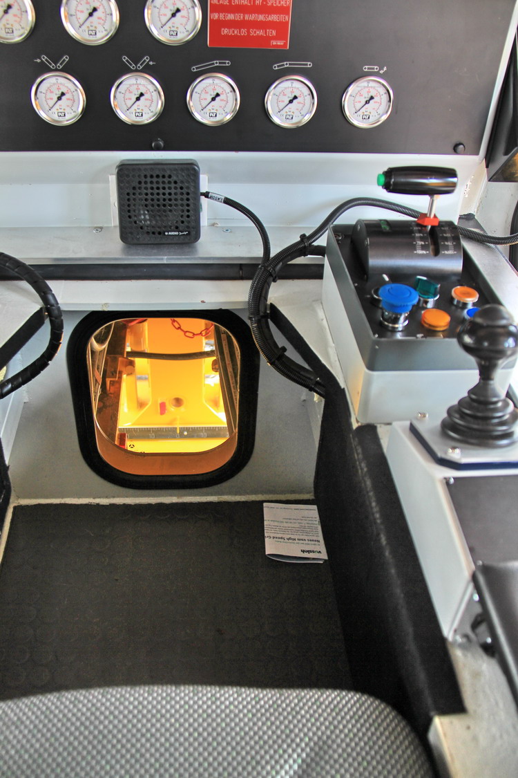 La machine fonctionne de façon ergonomique à l'aide de Plasser Intelligent Control 2.0. (P-IC 2.0). Ce système de commande de machine combine les fonctions de contrôle et les fonctions de diagnostic dans des panneaux tactiles clairement définis. Les fonctions qui nécessitent constamment sont fonctionnées par le bureau habituel et ses commutateurs, boutons-poussoirs, potentiomètres, etc.