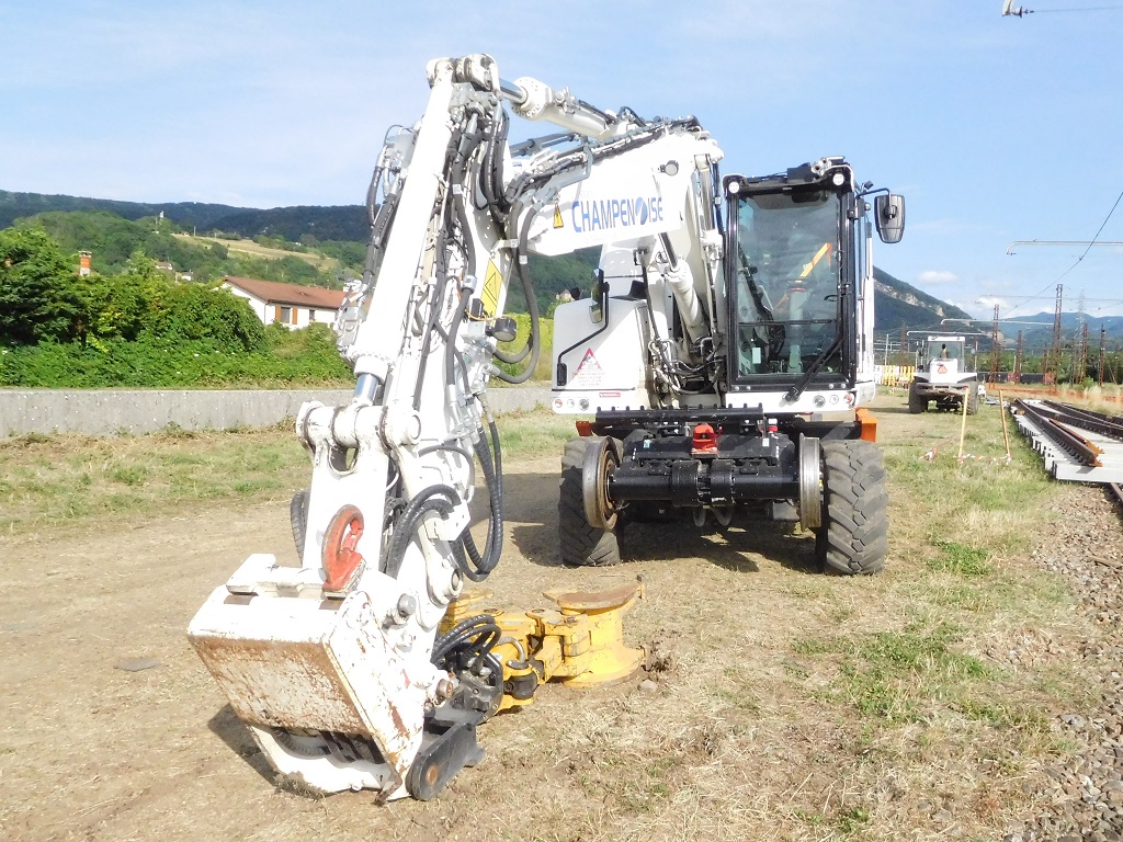 Revoici cette pelle à l'été 2023 pour un chantier RAV en gare d'Ambérieu-en-Bugey :
