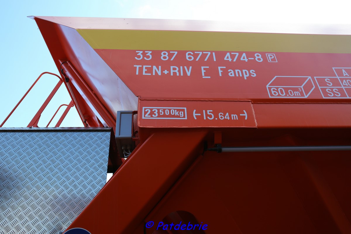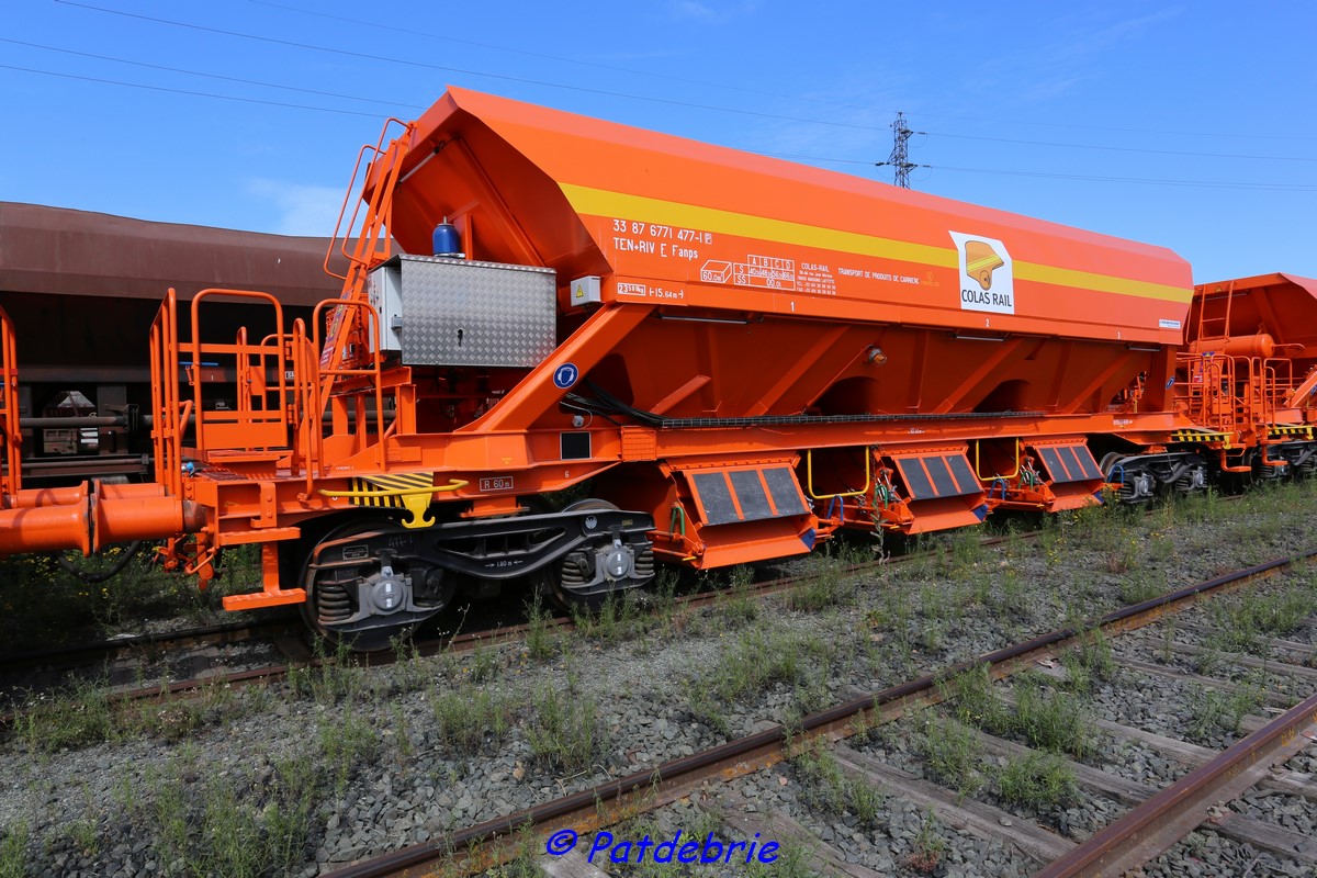 Ces wagons gardent leur immatriculation d'origine.Le passage en atelier a été assorti d'une couche de peinture et de la pose du nouveau logo de Colas-Rail.