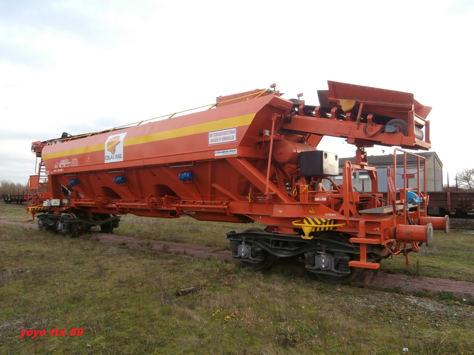 Il s'agit d'une trémie ballastière munie d'un tapis .