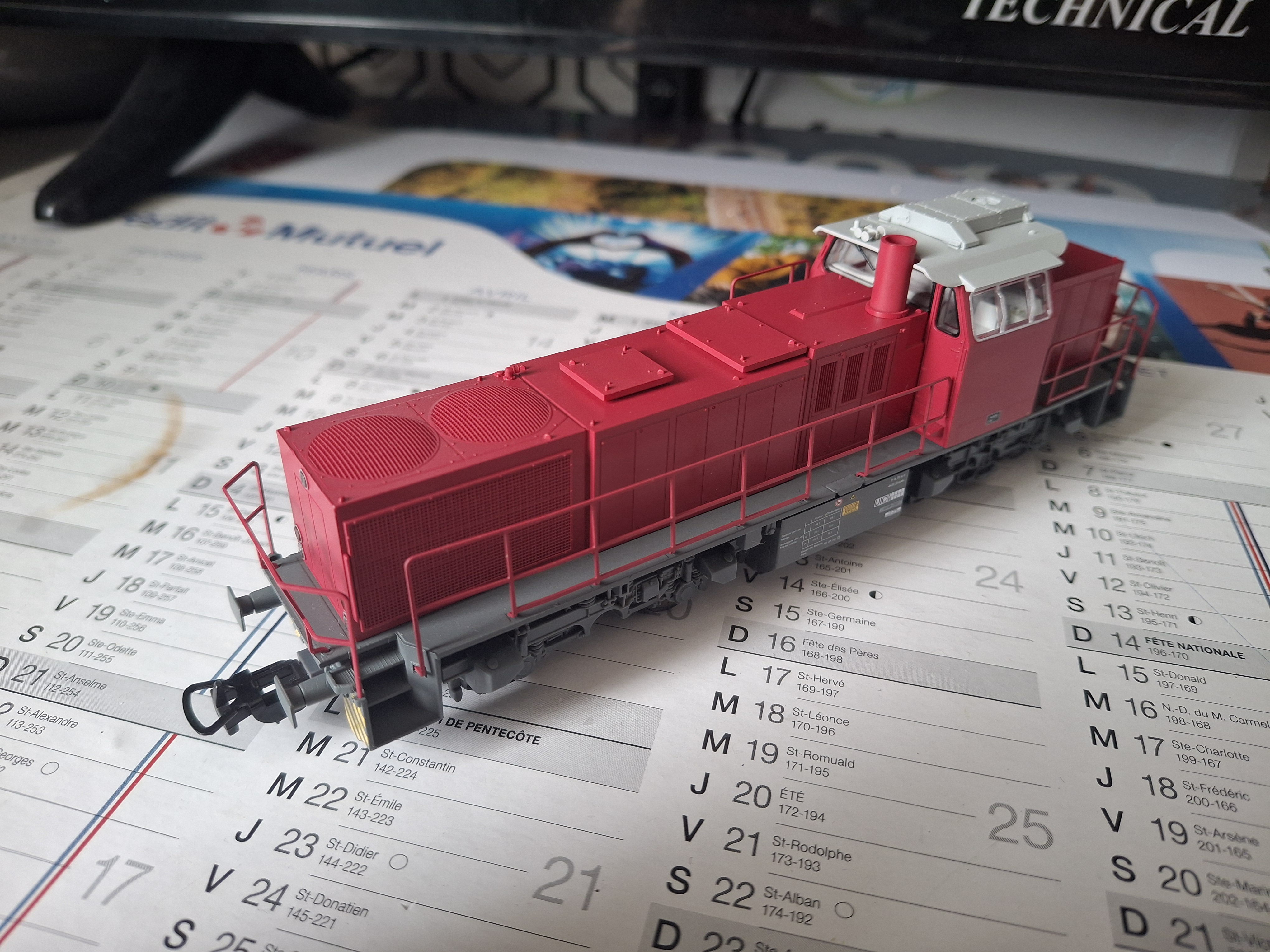 Sur le sujet du modèle réel, tu parles de la nouvelle livrée Alpha Train. C'est bien la verte ? Peut-être est-ce un effet visuel qui altère la couleur, mais je trouve ton rouge ... trop rouge. Celui que l'on peut voir sur le sujet réel est plus foncé, plutôt Bordeaux foncé ... mais ce n'est que mon avis ;)