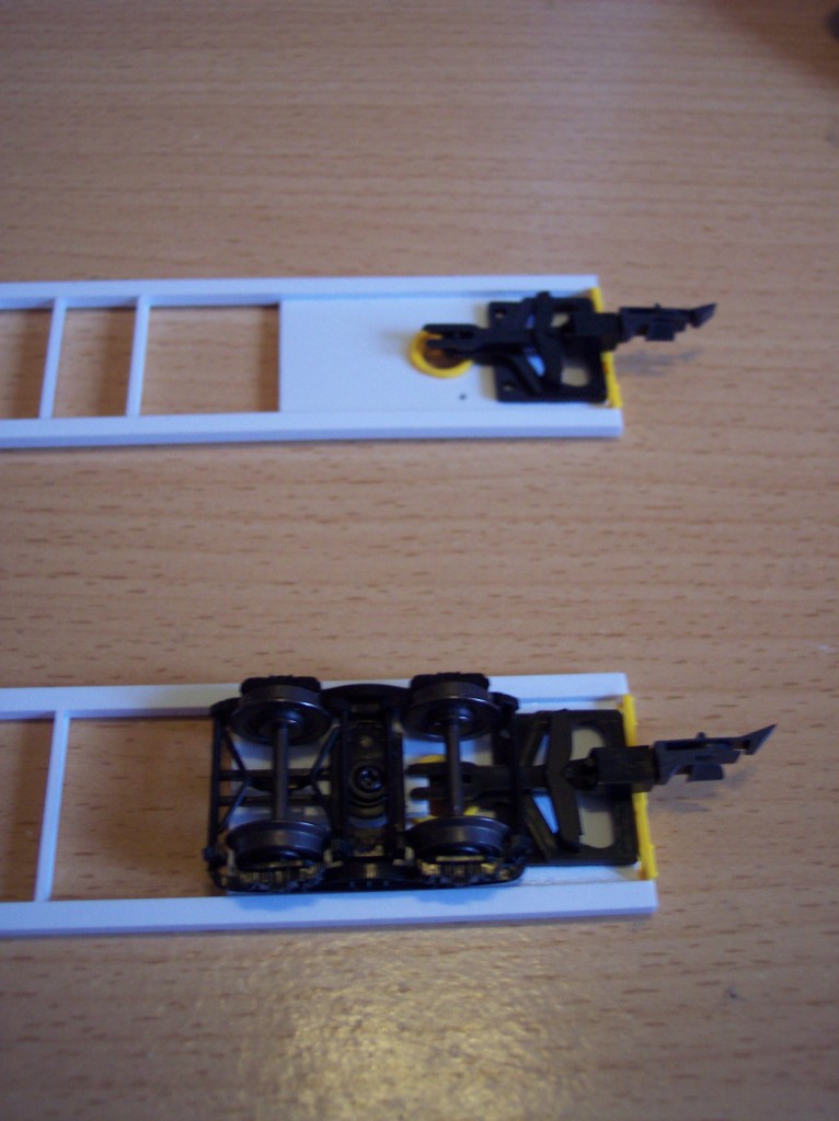 petit travail du jour, pose d'un système attelage (ROCO) avec des boggies (LSM)