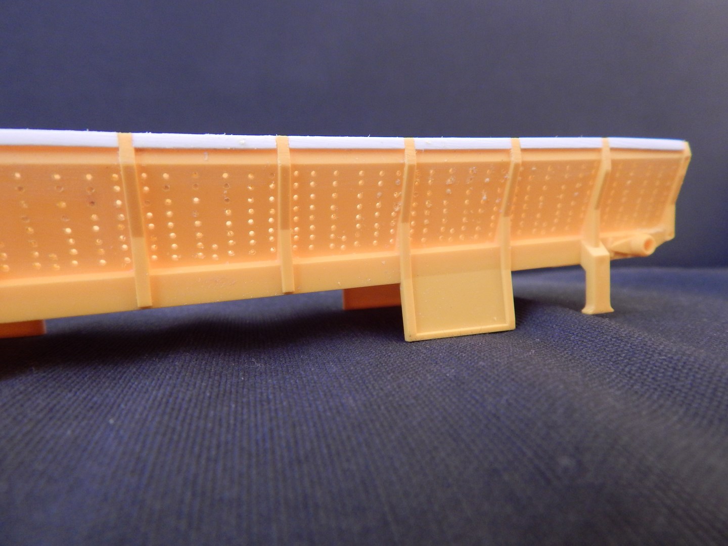 Ne voulant pas laisser les faces lisses, j'ai percé quelques trous diamètre 0.6 mm qui recevront chacun un petit morceau de profilé diamètre 0.5 mm ref 218 evergreen (bon pour les VAD 85 et 140 faudra trouver une autre méthode...... :pt1cable: )