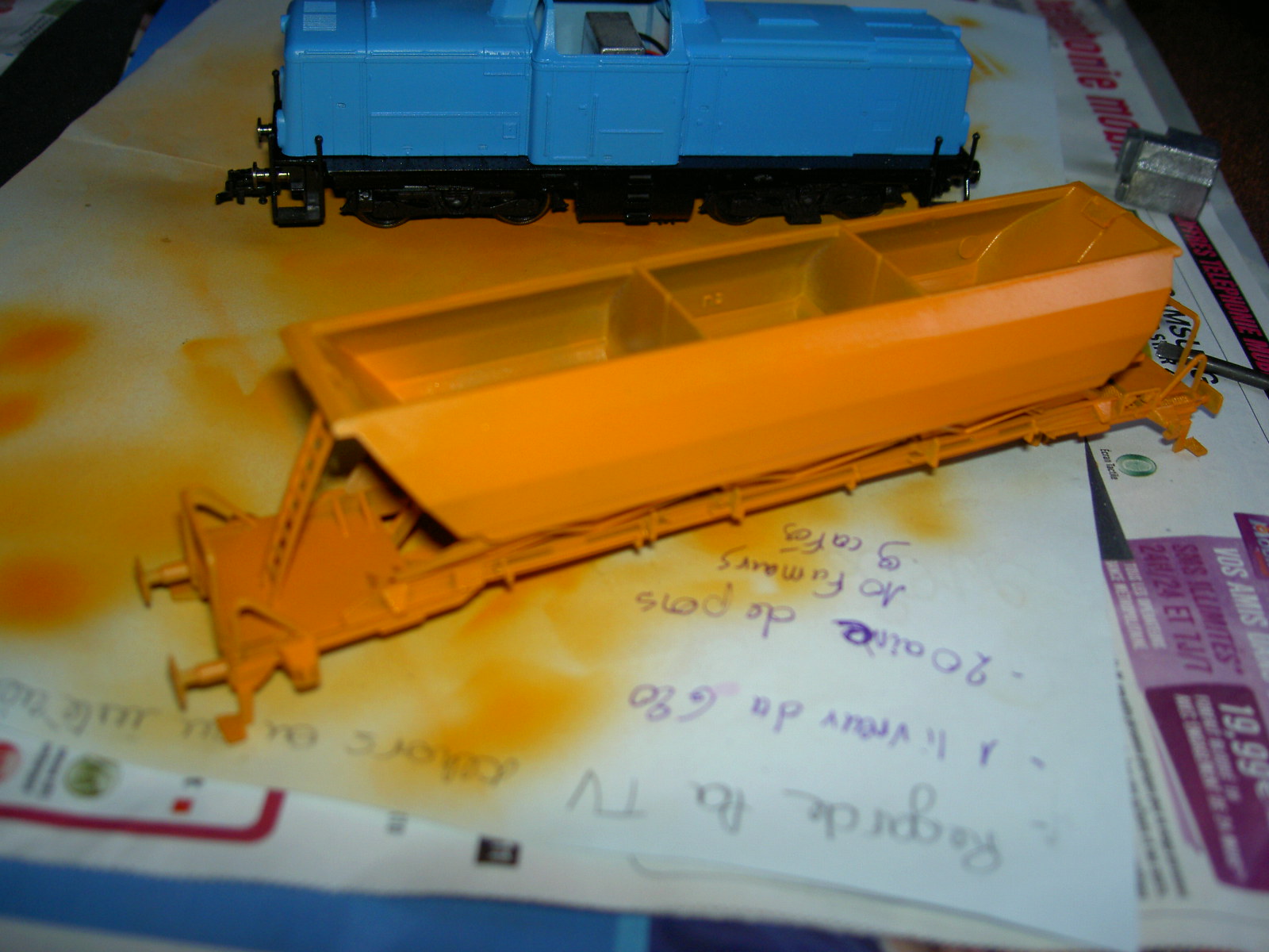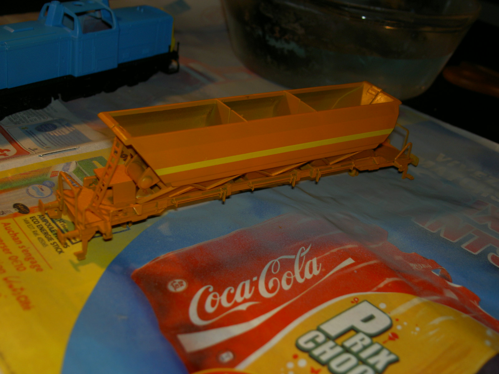 voici ma première trémie colas-rail (il m'en faut au moins une 20aine pour faire la rame complète qui passe sous ma fenêtre tout les soirs)