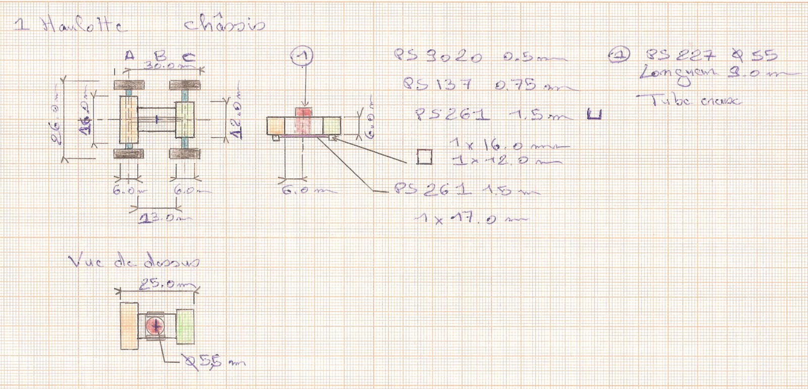 Ensuite, fabrication du chassis: (plasticard) PS9020, ps137, ps227 ps261 ps223