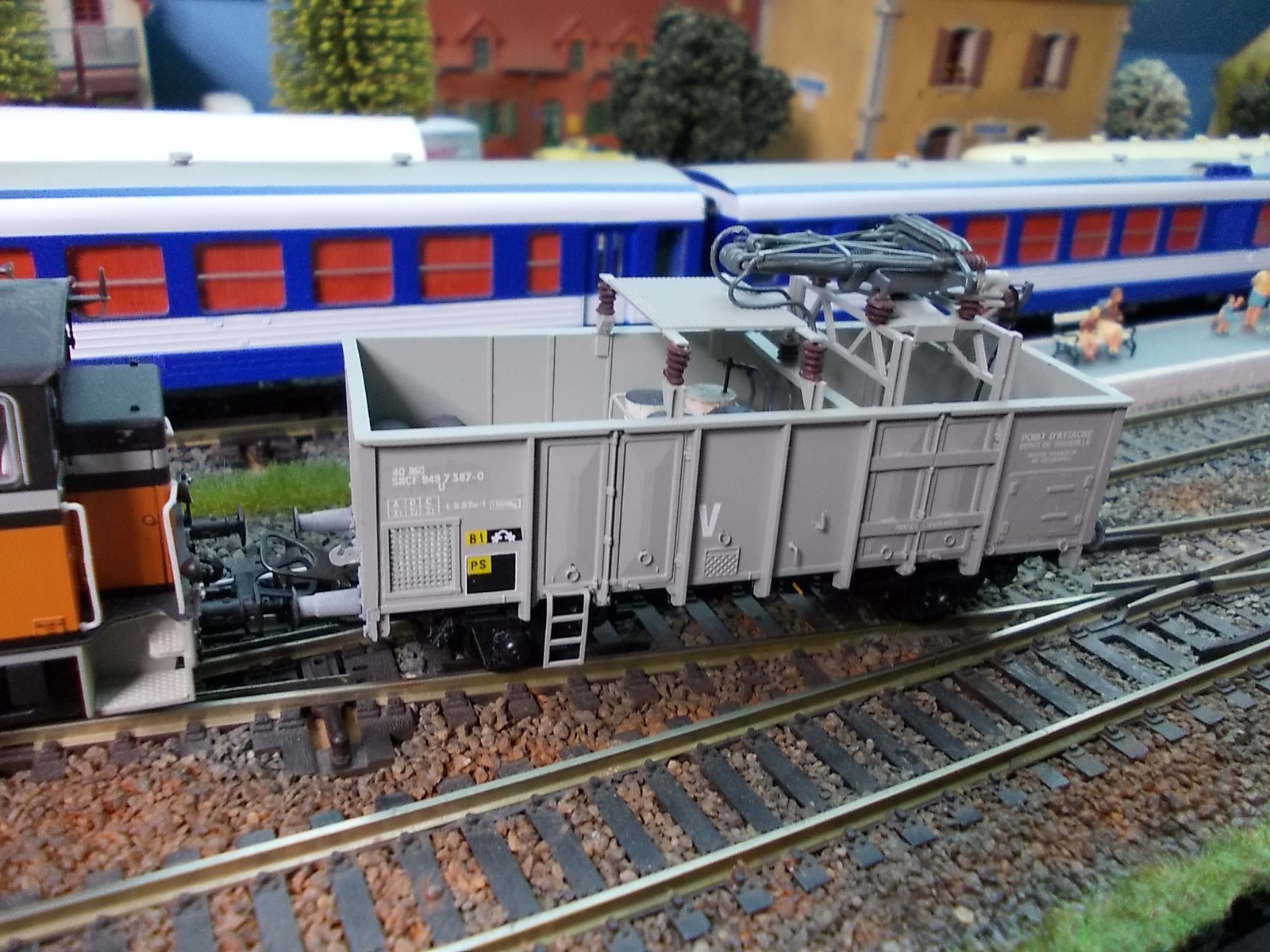 Modèle original reproduisant un wagon tombereau transformé en graisseur de caténaires du dépôt de Thionville dans les années 80.