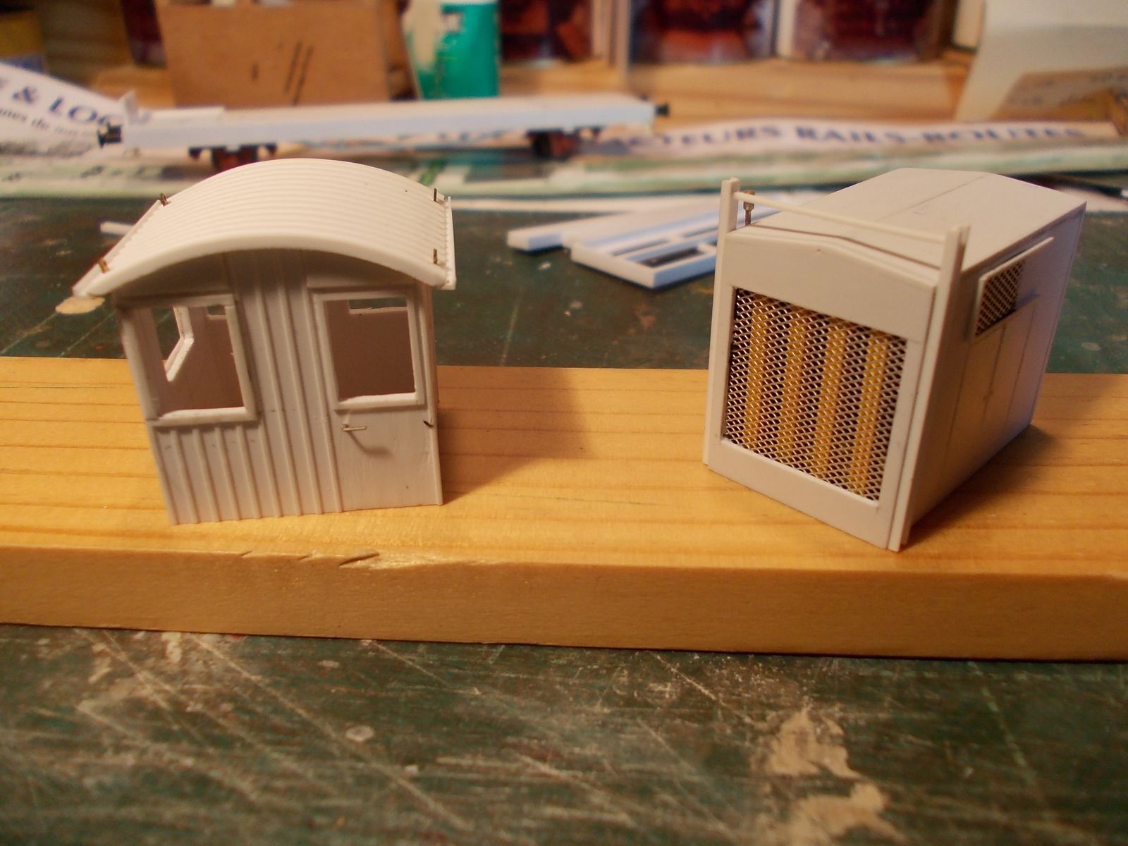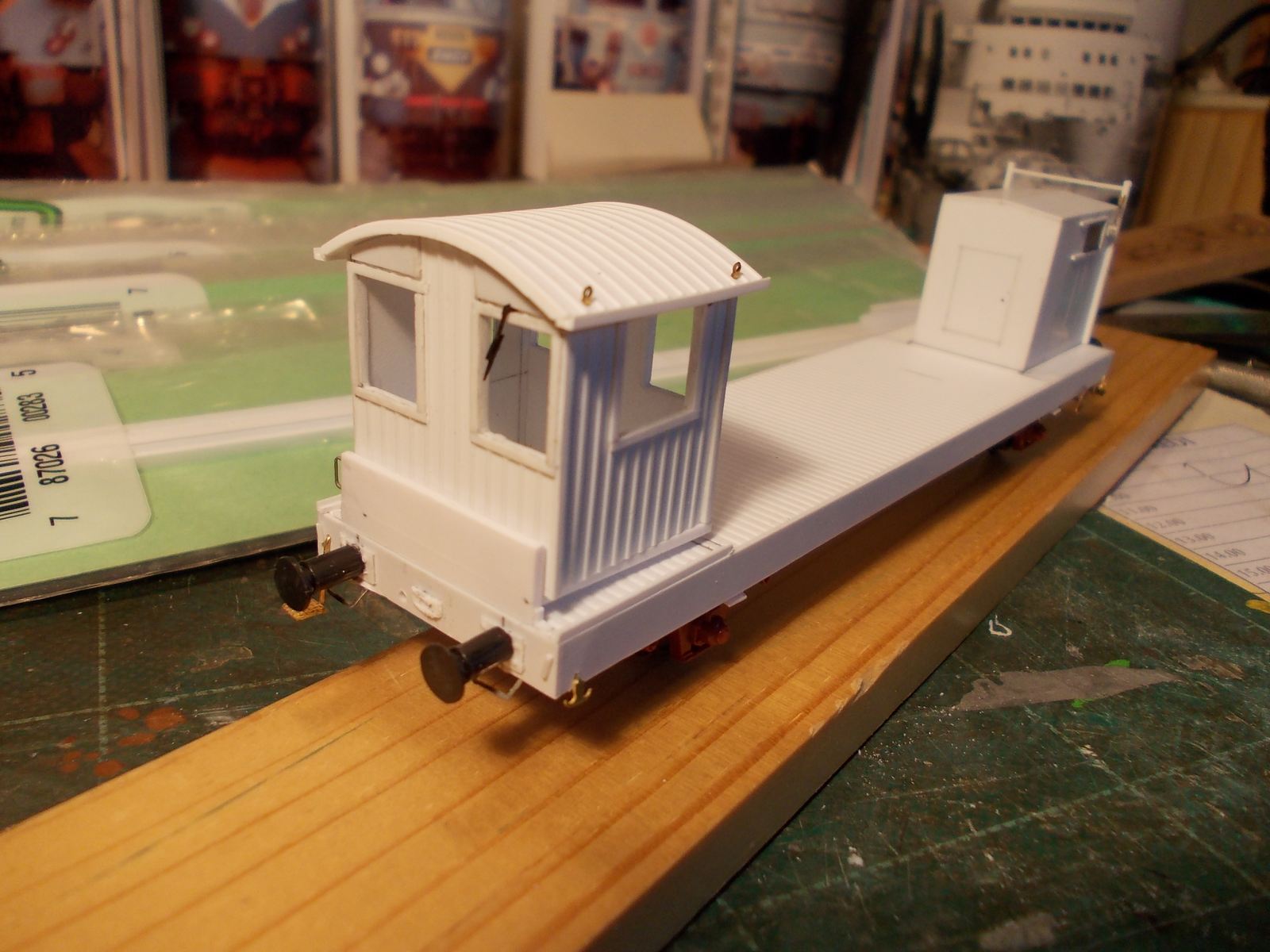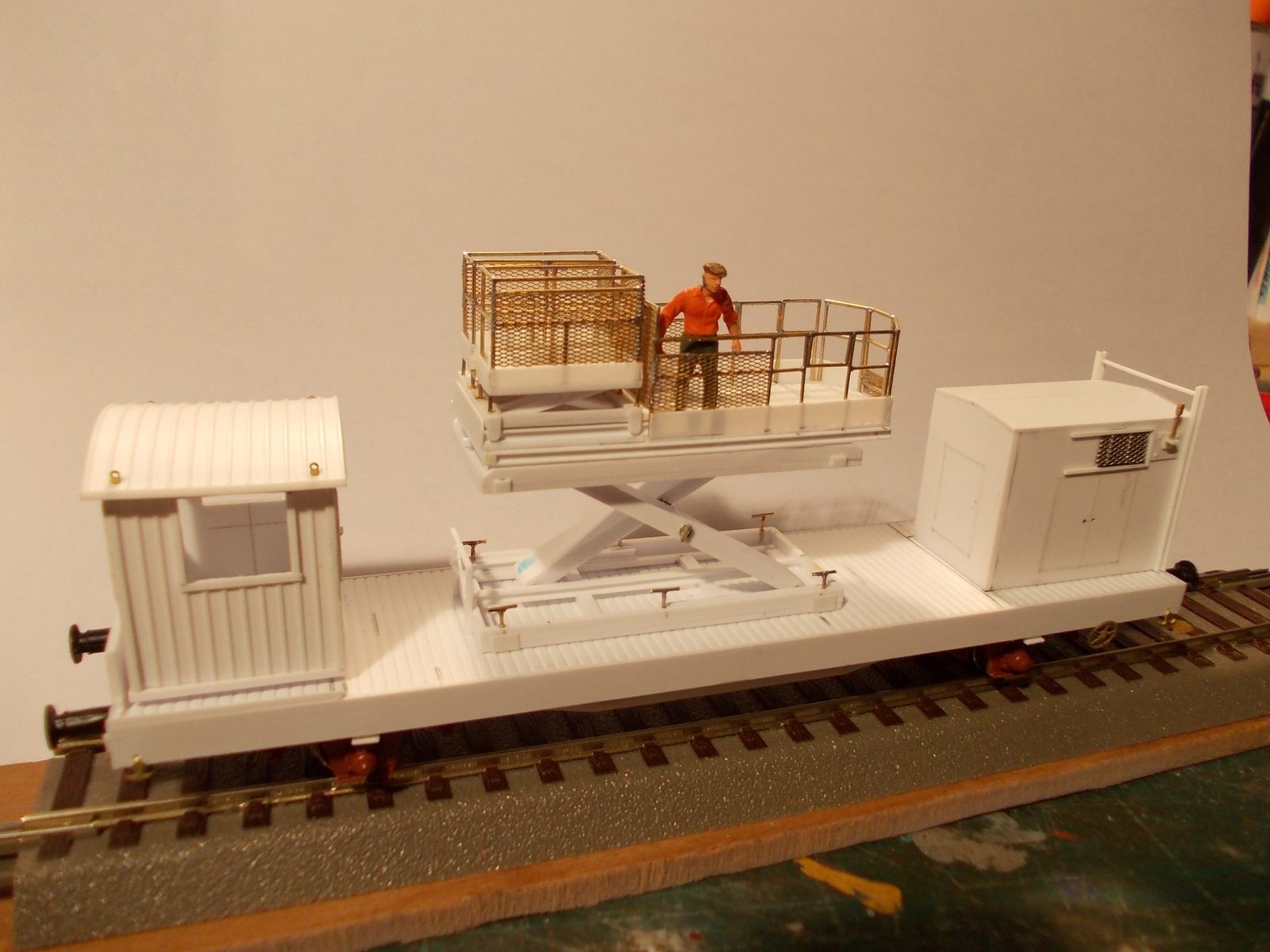 Voici ma réalisation en cours,un wagon APMC,la nacelle est en cours de finition,car comme je la veux mobile