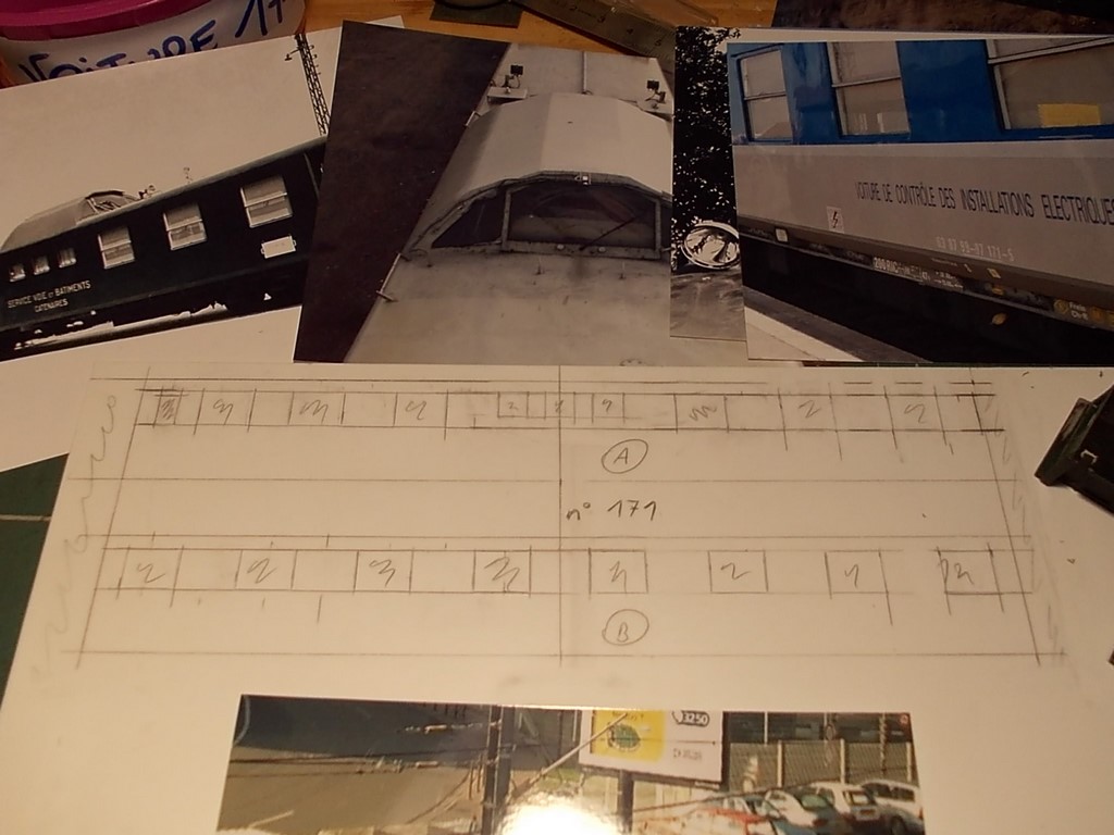 La voiture de mesures la plus vieille encore en service,voici la voiture 171 enfin dans ses débuts de construction.Aucune base existante n'est utilisée à part les portes qui proviennent de voitures Ocem et les bogies quoique bien modifiés sont de voitures Grand Confort ;)