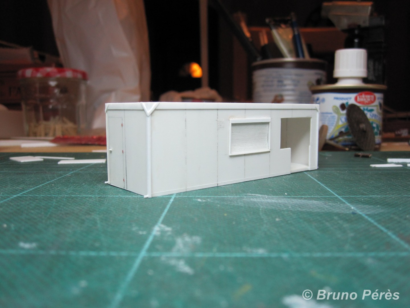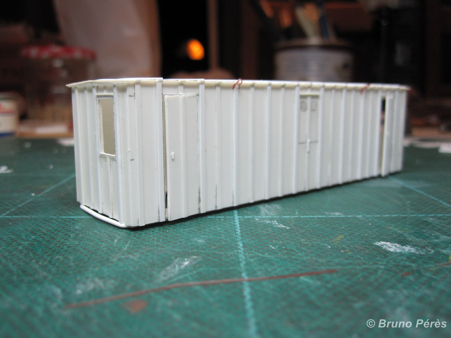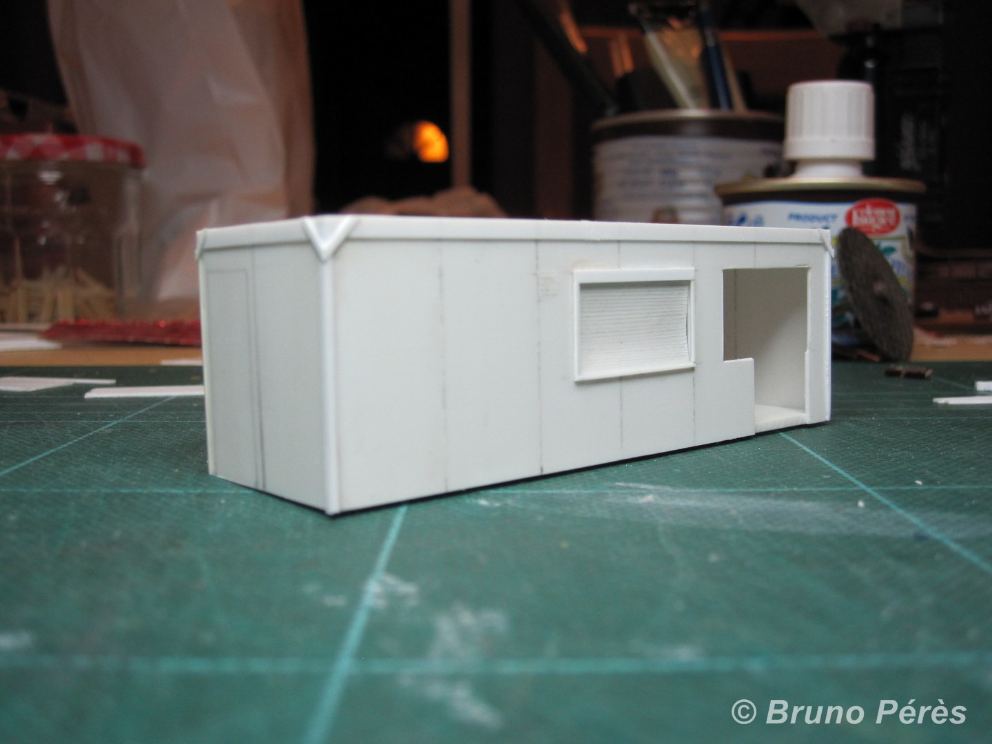 Voici le bricolage du jour. Il reste encore quelques ponçages à effectuer pour affiner les renforts obliques de l'ossature métallique, ainsi que quelques détails à ajouter avant peinture, mais on n'est pas loin du modèle fini ! Bien entendu, il faudra également ajouter les petits détails qui font vrai à l'intérieur.