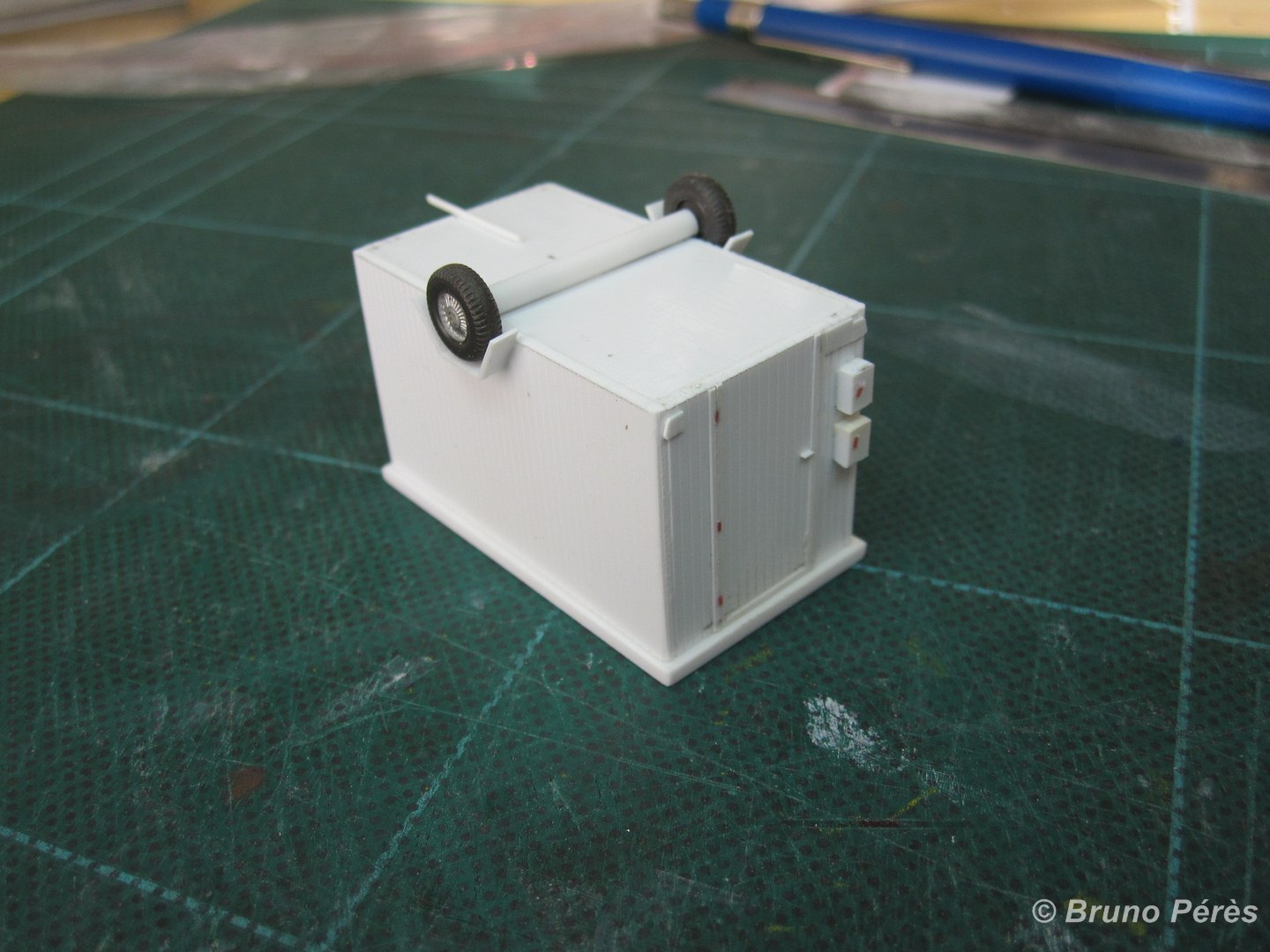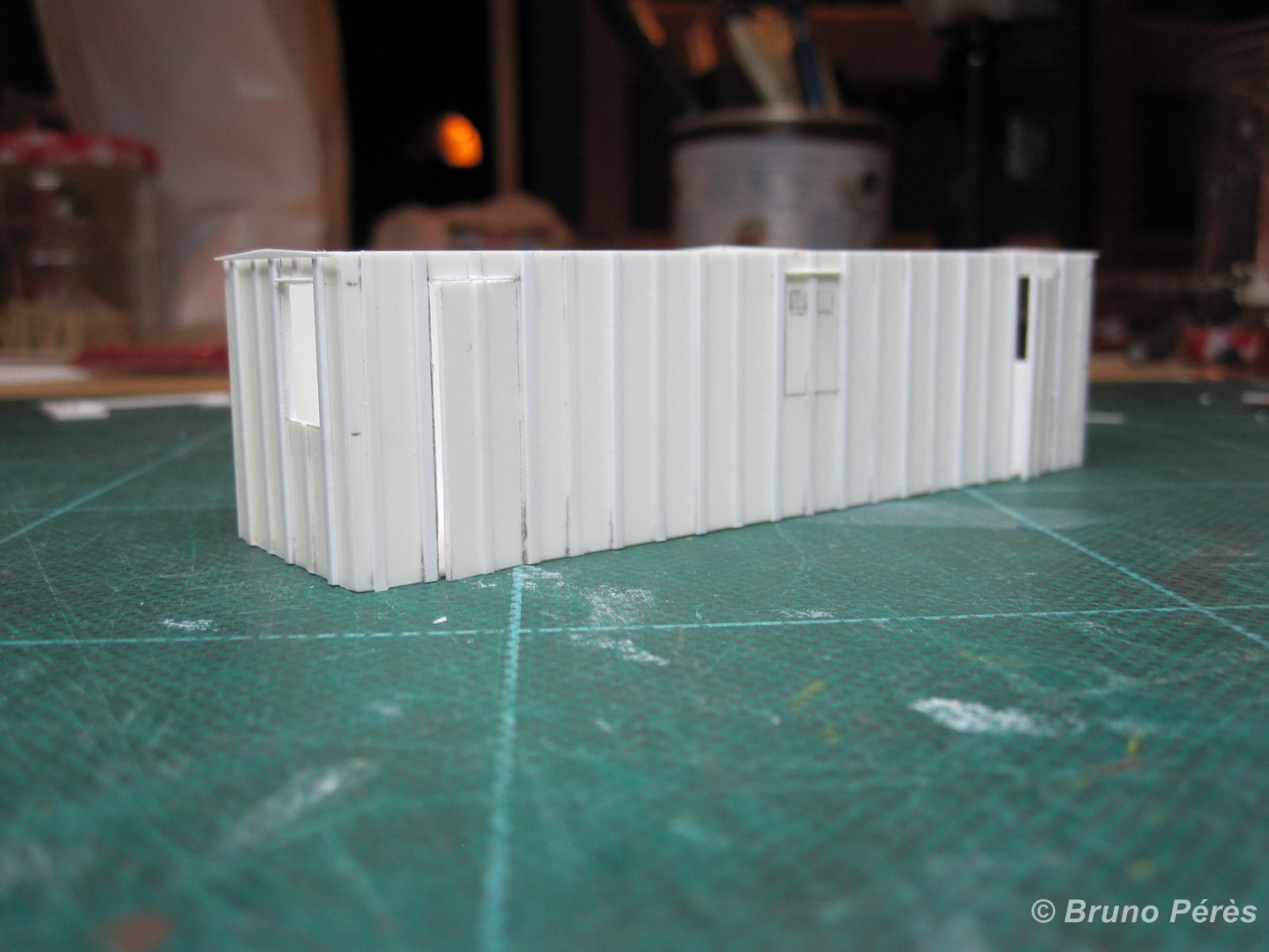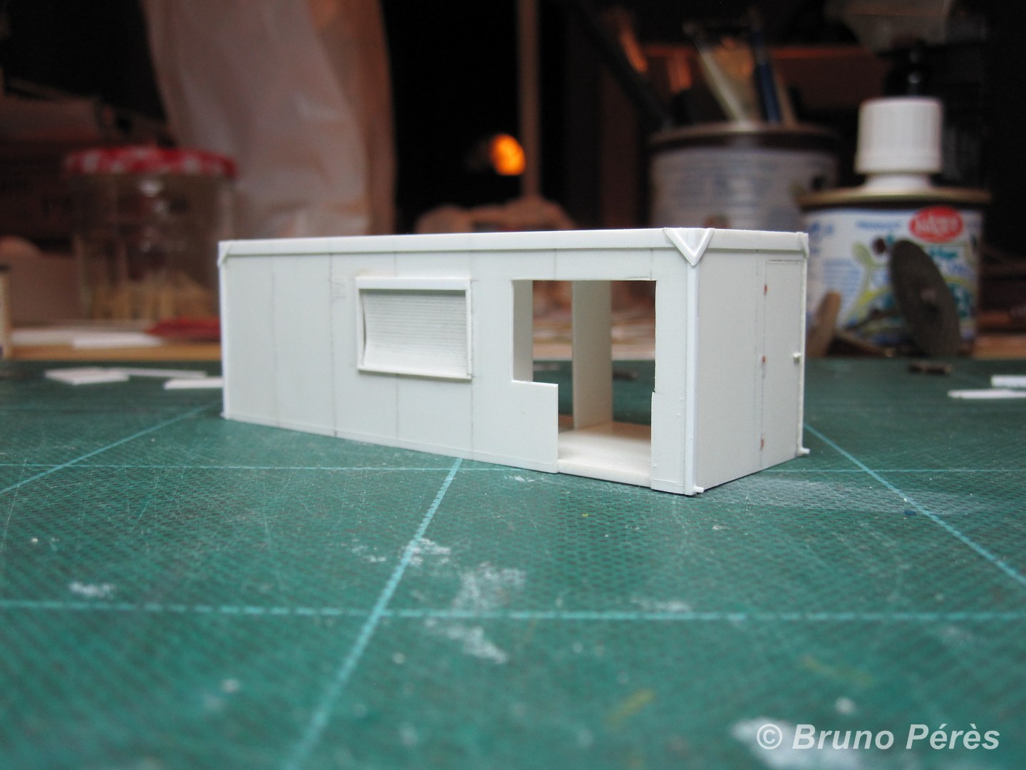 Voici le bricolage du jour. Il reste encore quelques ponçages à effectuer pour affiner les renforts obliques de l'ossature métallique, ainsi que quelques détails à ajouter avant peinture, mais on n'est pas loin du modèle fini ! Bien entendu, il faudra également ajouter les petits détails qui font vrai à l'intérieur.