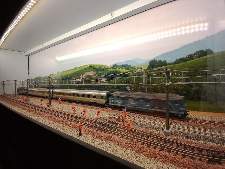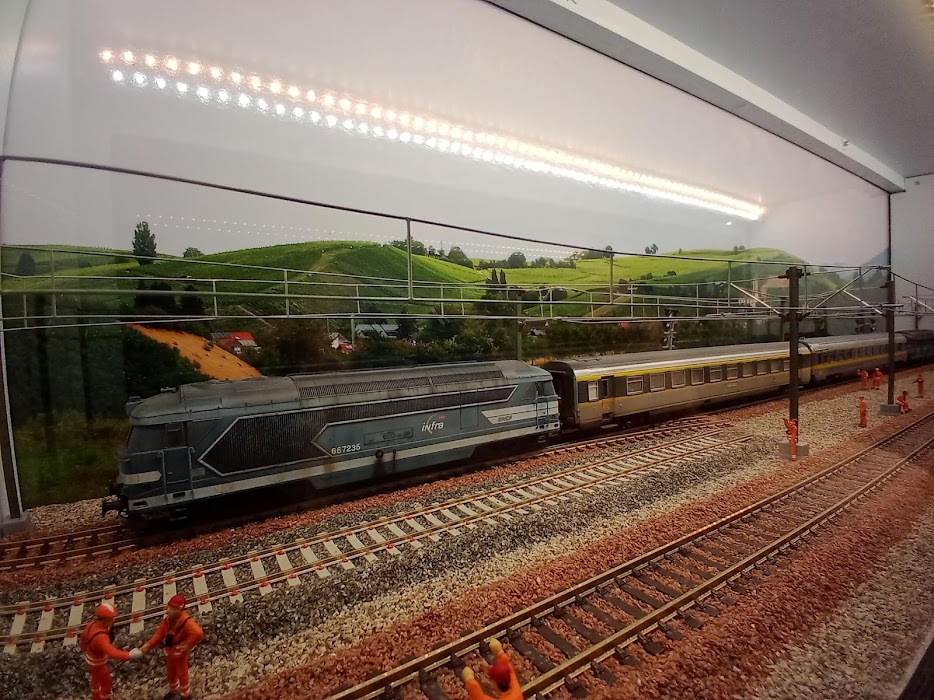 le diorama se trouve dans une vitrine qui surplombe les voie de circulation du réseau