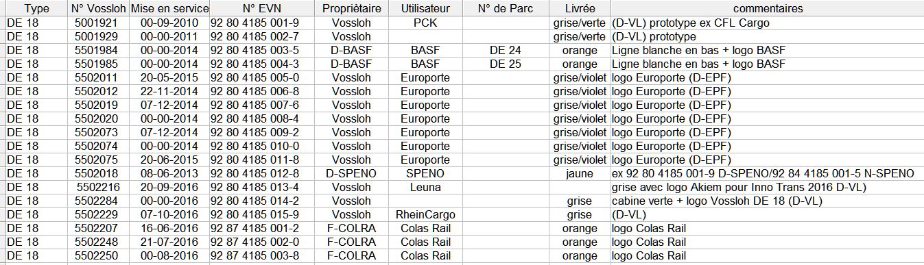 les DE 18 pour Colas, Europorte et prototype ou autre ou SPENO TTX