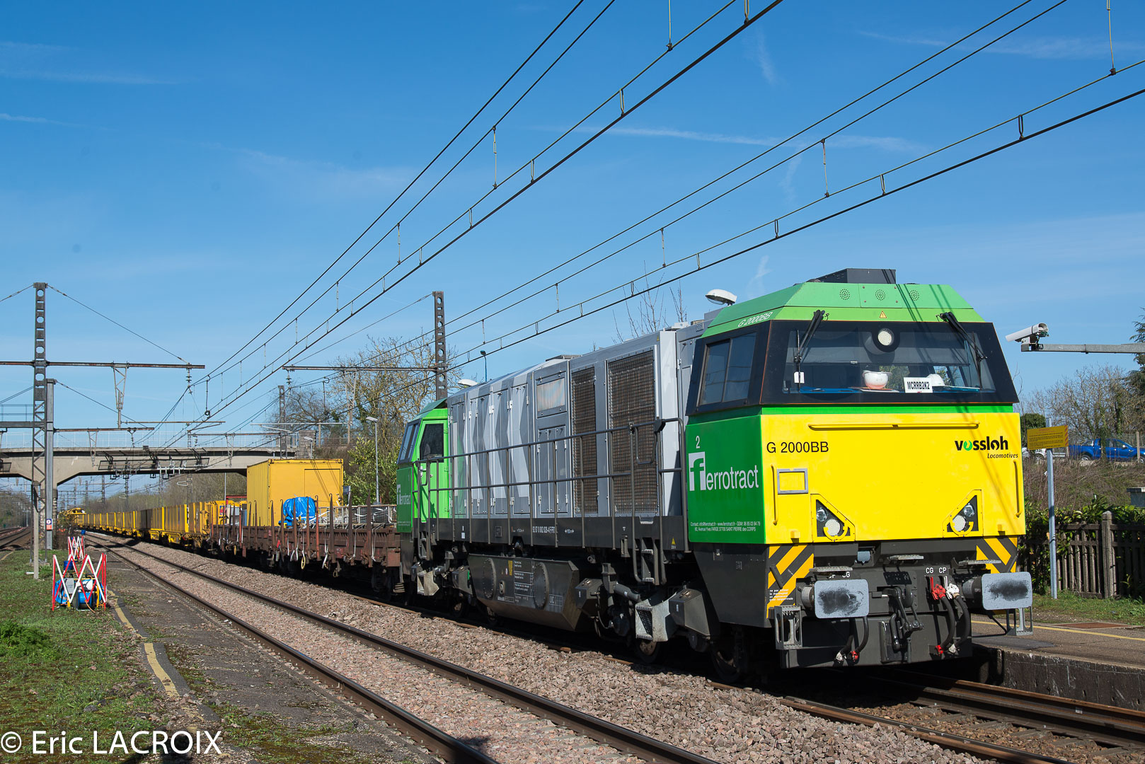 G 2000 Ferrotract 92 87 0 002 028-4 F-FRT en tête du train de renouvellement P95 MATISA Transalp Renouvellement à Villeneuve la Guyard le 22 mars 2017.