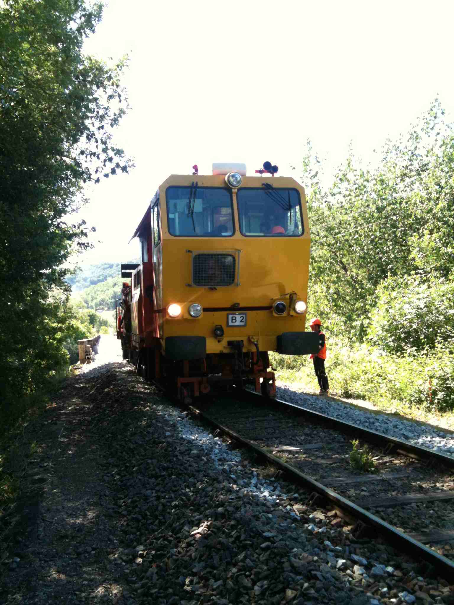 Elle a été rapatriée ce matin en gare de Cambo, tractée par un Unimog: