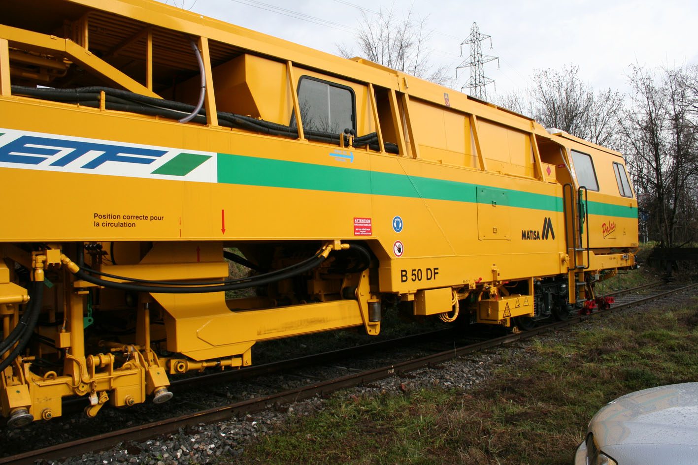 Le chariot rouge, c'est le système Palas, je vous laisse découvrir la doc sur le site de Matisa