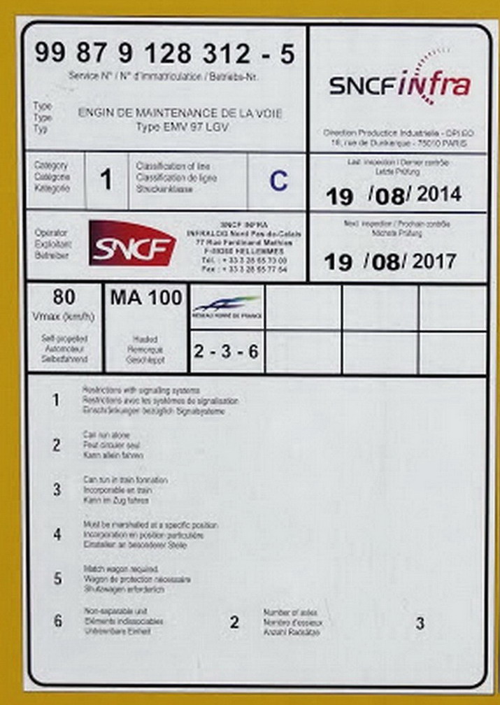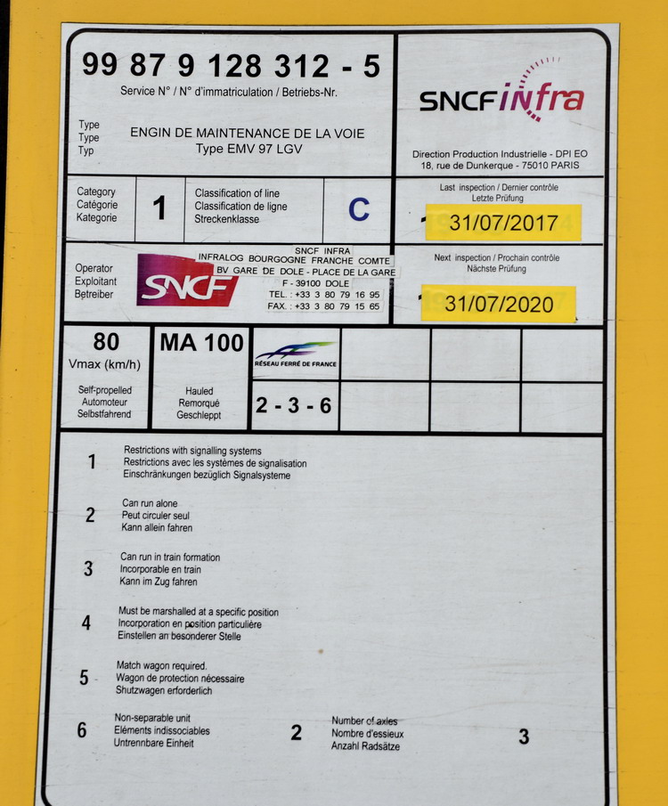 Voici la Bourreuse EMV 97 LGV Framafer n°284 de 1999 - 99 87 9 312-5 SNCF-LL ex 9.329
