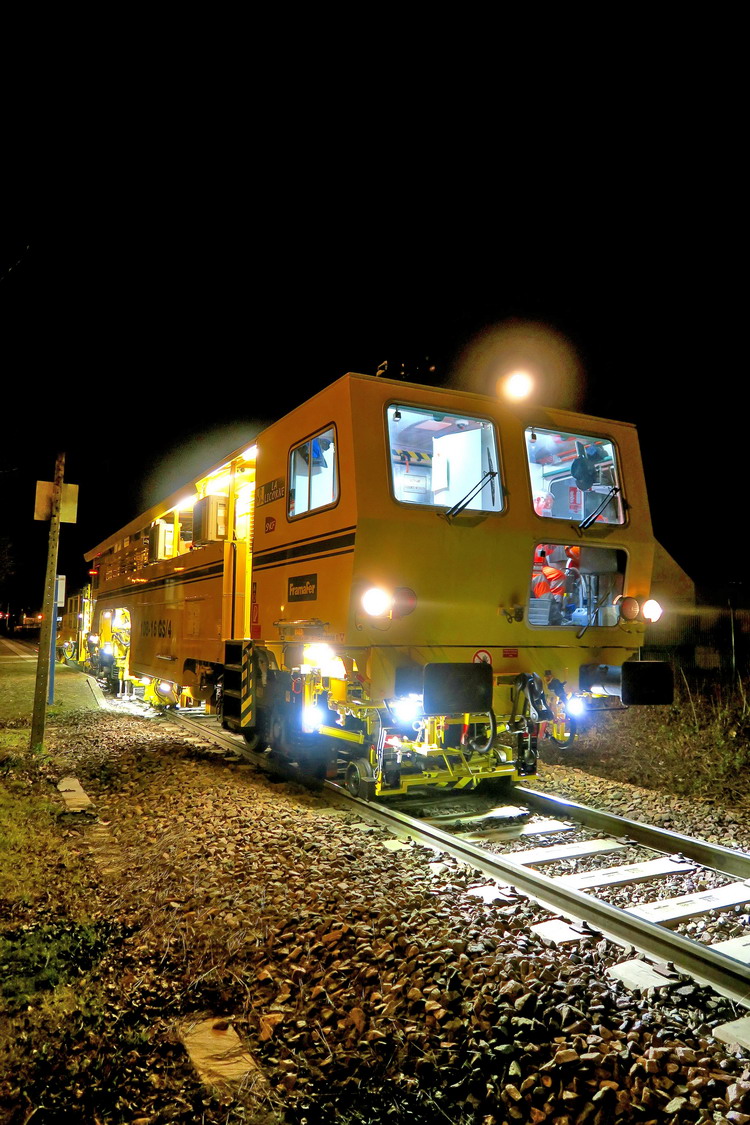 Voici la Licorne en action dans la nuit du 16 au 17 février 2017 à Obernai ligne Molsheim Obernai Sélestat en voie unique refaite entièrement