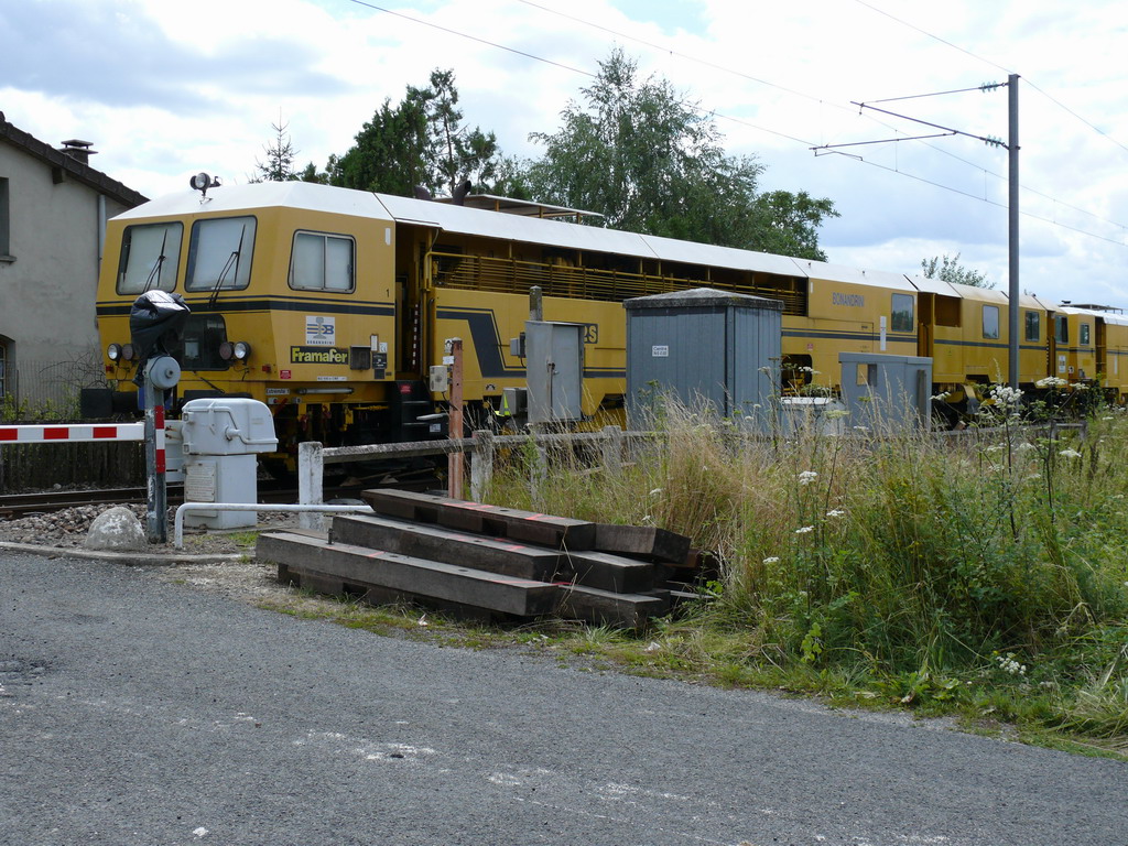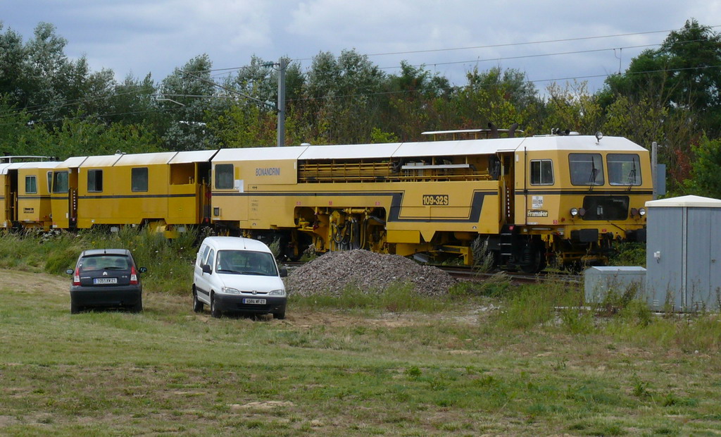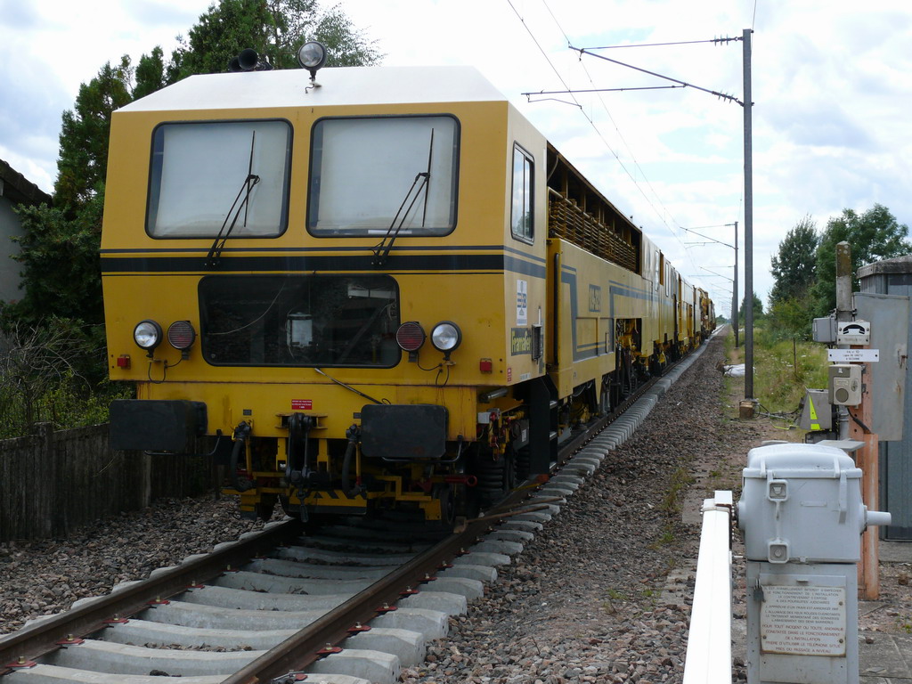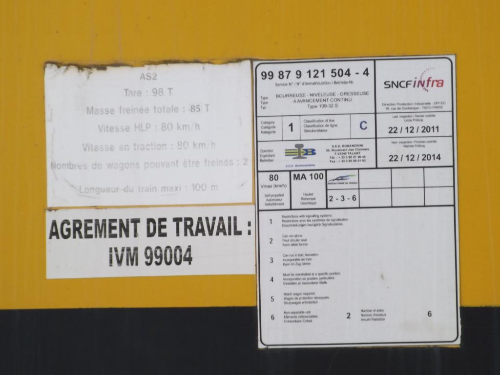 Je retrouve cette machine aujourd'hui, entre les Chapelles Bourbon et Marles en Brie. Le PN est HS pour une semaine. Cette machine est regroupée avec 2 autres bourreuses et une régaleuse. Le matériel est surveillé mais a force de tourner autour j'ai sympathisé avec le gardien.