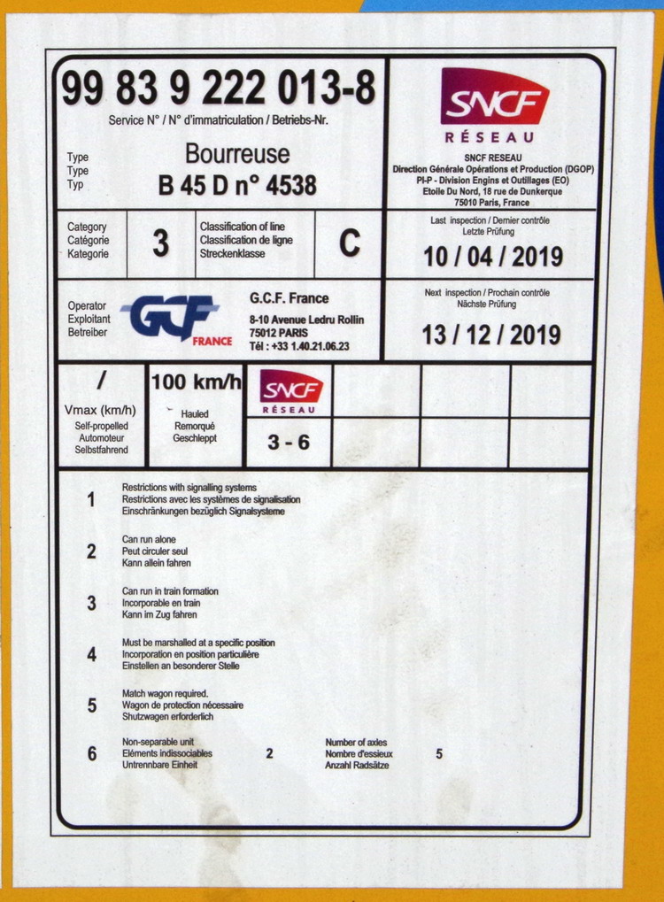 Voici la Bourreuse de type B45D de Matisa n°4538 - 2016 - 99 83 9 222 013-8 de GCF France