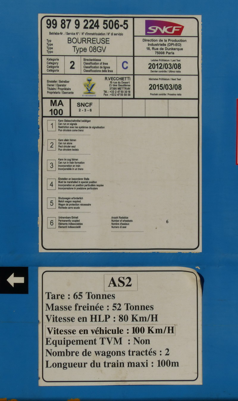 j'ai trouvé la bourreuse de Vecchietti la 08-16/275 GV au Nord du Crem de Saint Pierre des Corps