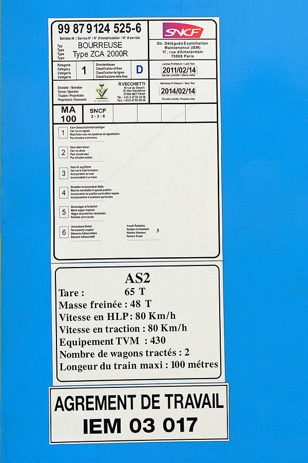 La Bourreuse ZCA 2000 R de Vecchietti de retour depuis mai 2014 pour la maintenance avec des photos de l'autre face