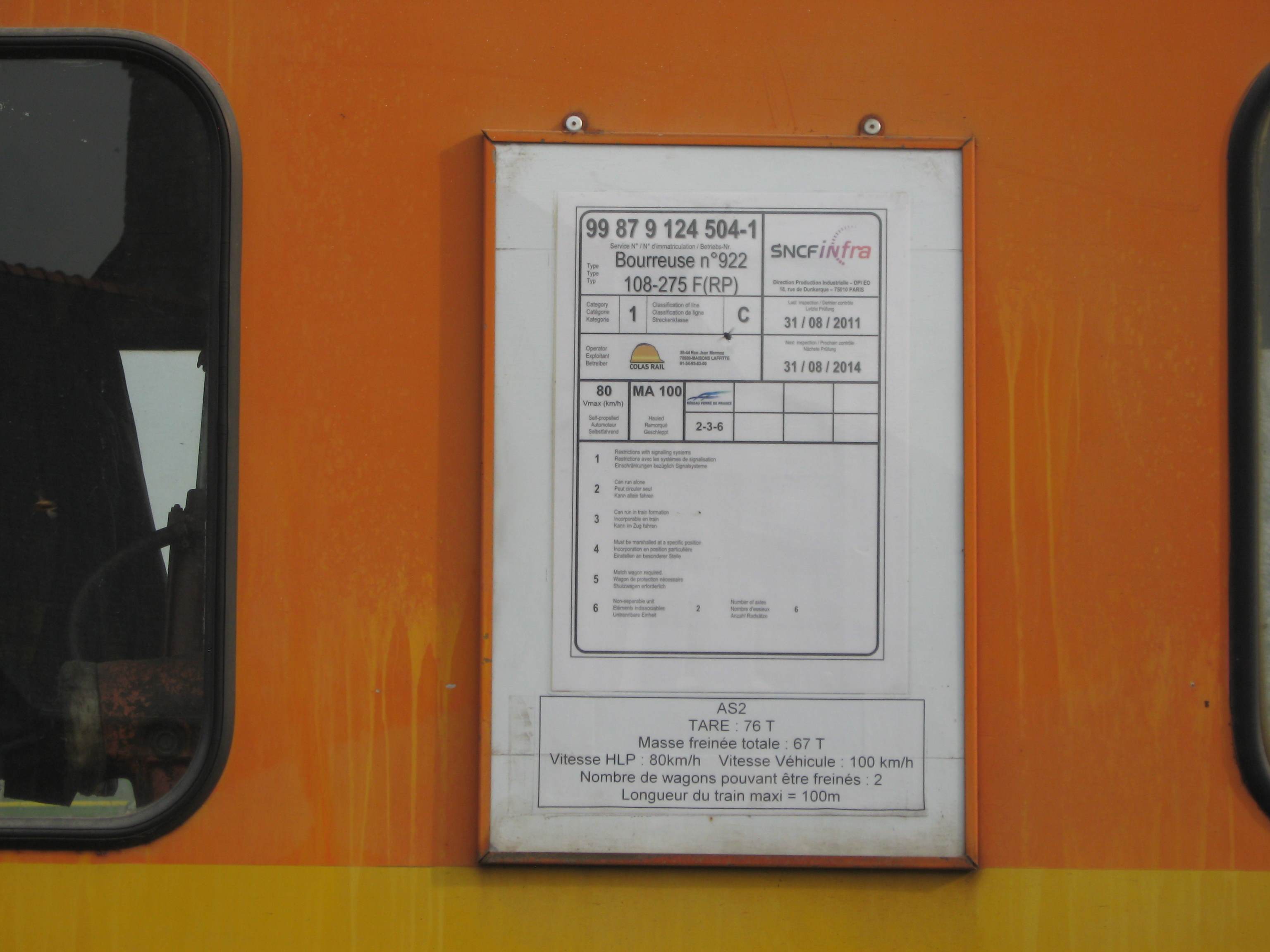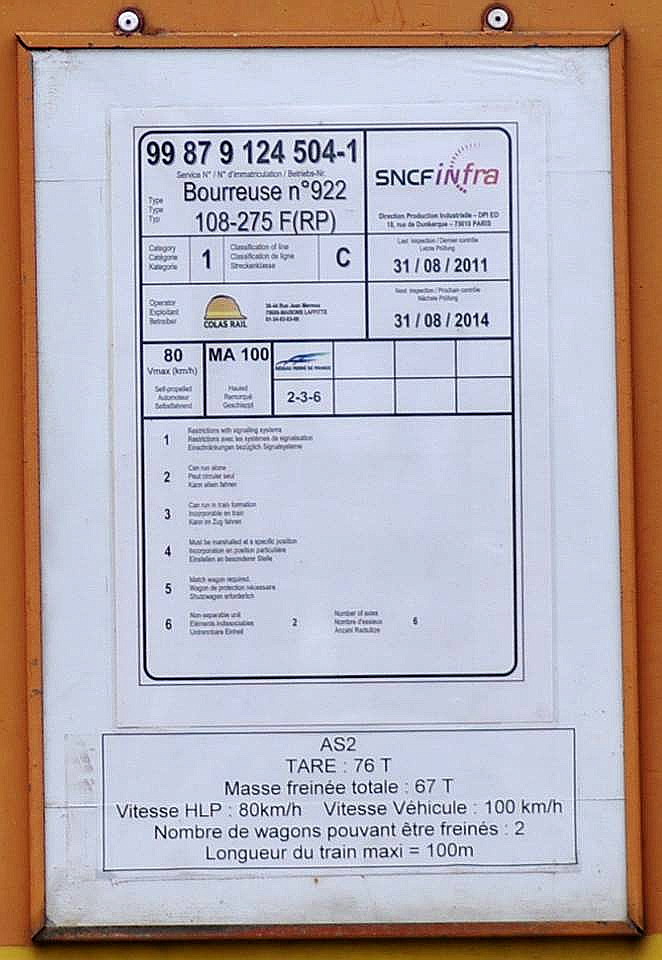 Bizarre, j'avais enregistré cette bourreuse en tant que 108 275 GV alors que c'est une FRP
