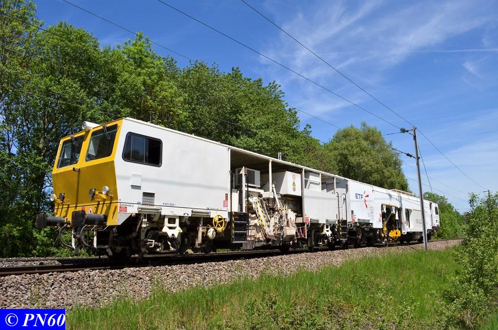 La bourreuse-niveleuse-dresseuse de voie courante et d'appareil de voie 108-32/275 de la société ETF vu à Bourmont le 25 mai 2017 lors de travaux sur la ligne 15.