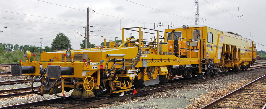 Voici une nouvelle Bourreuse-Niveleuse-Dresseuse Mixte pour appareils de voie sur les ligne classique pour remplacer les B 20 Bi AC4 de MATISA qui ne sont pas adaptées à des appareils de voie sur plancher béton en provenance de Framafer