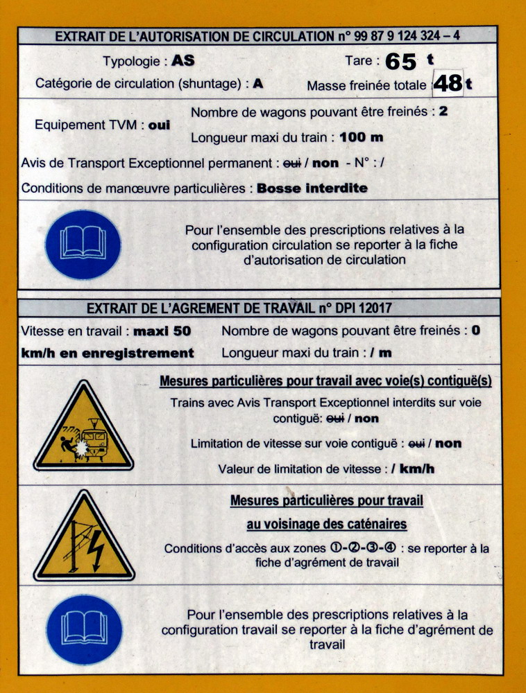 99 87 9 124 324-4 SNCF-INFRA-PRG avec l'agrément DPI 12017 - 18-92-2015/2018 - Tare 65 t - longueur 26,66 m