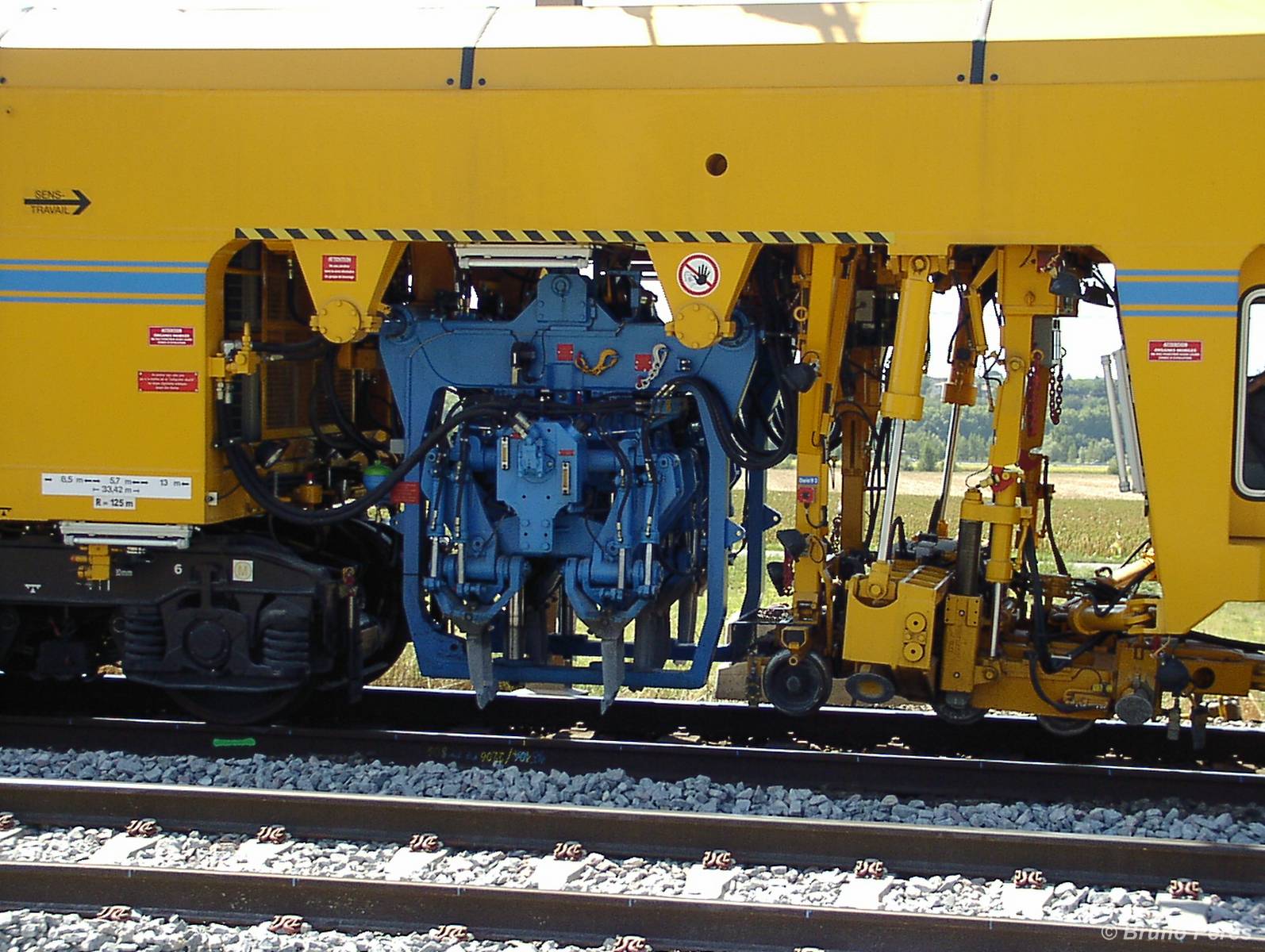 Il faut dire que cette bourreuse a tout d'une Vecchietti (livrée jaune à bande bleue, groupe de bourrage bleu) ... sauf logos et raison sociale.