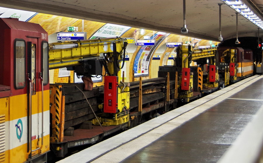 photos de Gtr Lefèvre à la station Charles de Gaulle Etoile le 17-08-2019 avev un train de travaux de la RATP