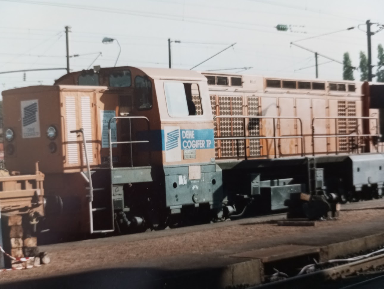 Pour info, les deux photos en question montrent l'engin encore aux couleurs de Déhé, avec les toles au dessus des boggies de couleur grise claire. A noter aussi qu'un liseret bleu se trouvait alors en partie médiane sur la cabine, et en partie haute sur le tour de la caisse. L'une des photos a été prise en janvier 83.