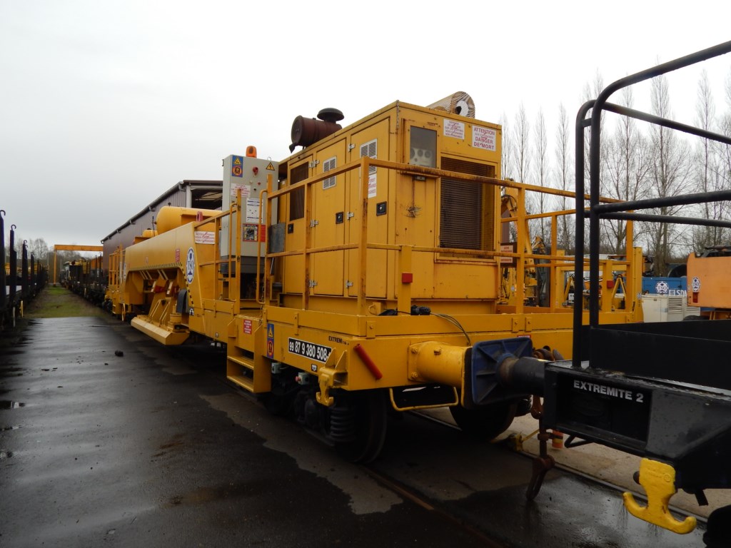 Le locotrail est en ce moment à Londres. Sa fonction est de pousser le train béton à une vitesse constante et régulière. Pour cela son principe de fonctionnement est de descendre ses patins sur le rail de les serrer au niveau de l’âme du rail et par un système similaire au chenille de pelle mais dans un autre sens de se servir du rail pour avancer et cela marche très bien.