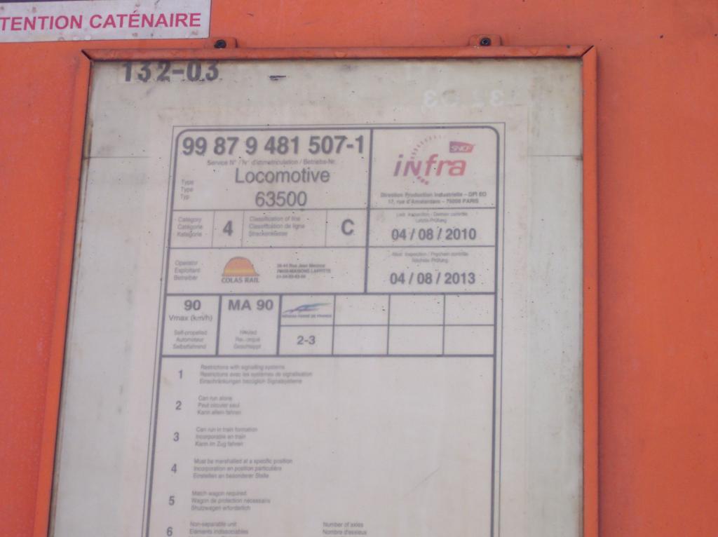 - Numéro actuel : 99 87 9 481 507-1 - Colas Rail F60000 07