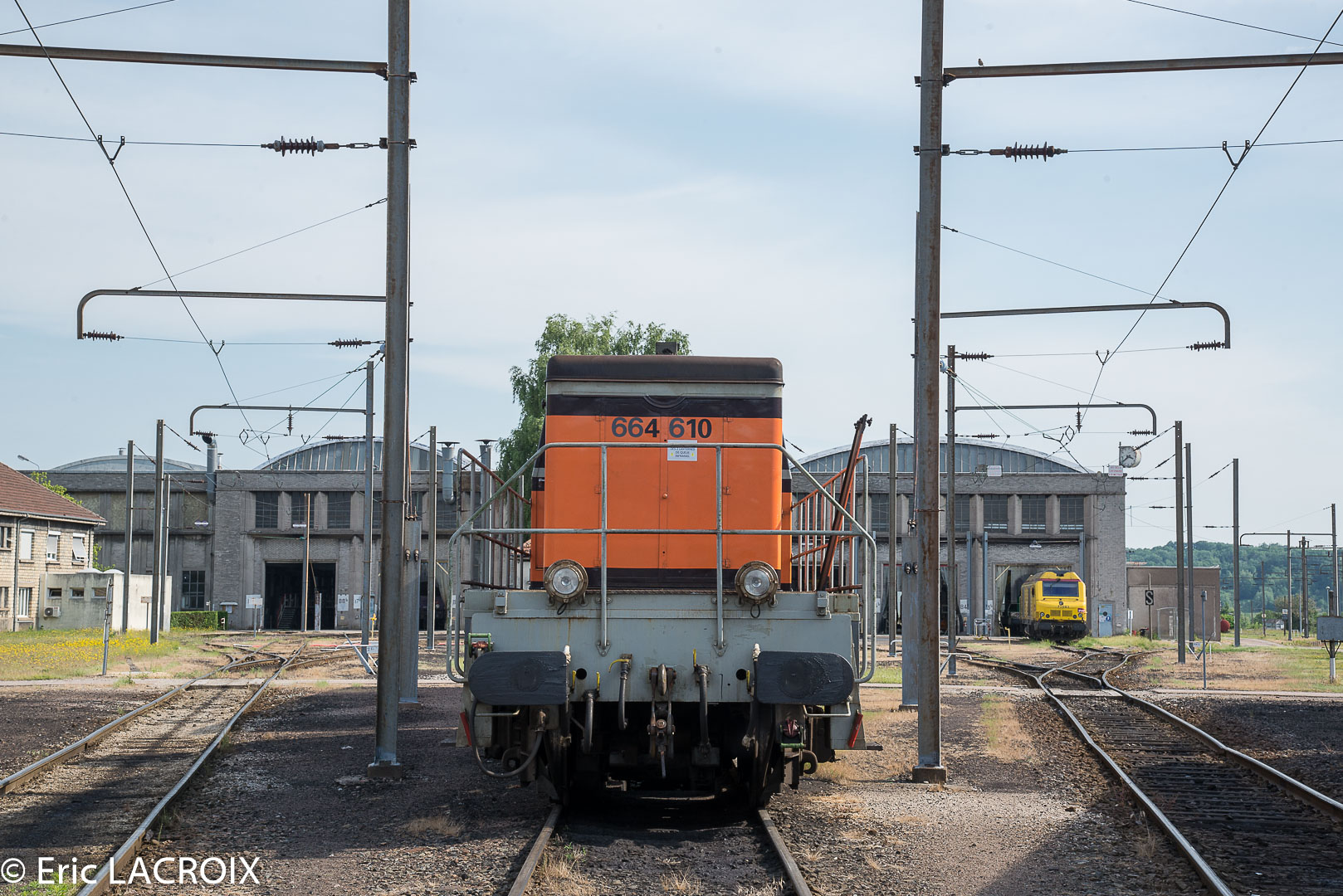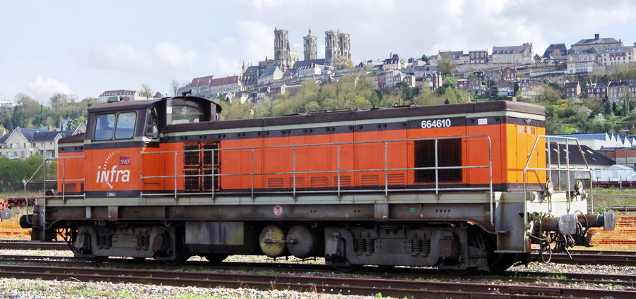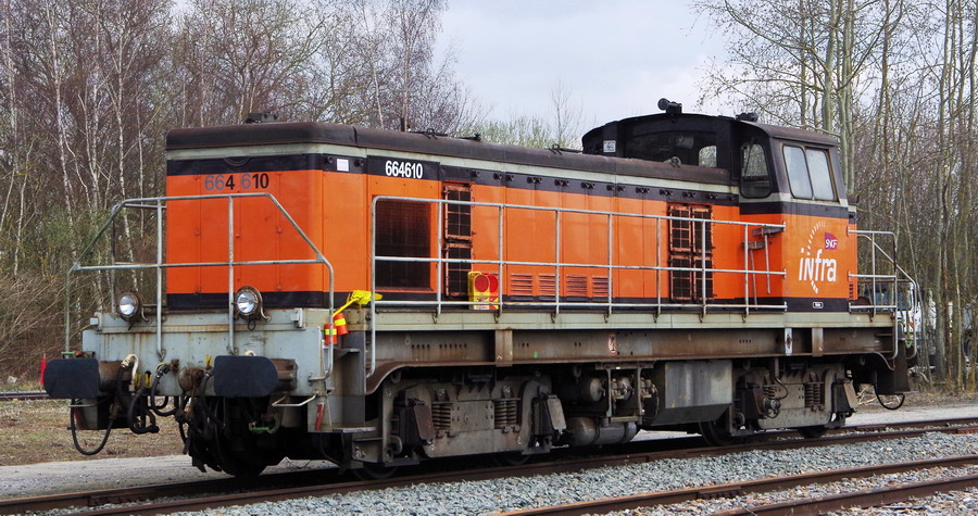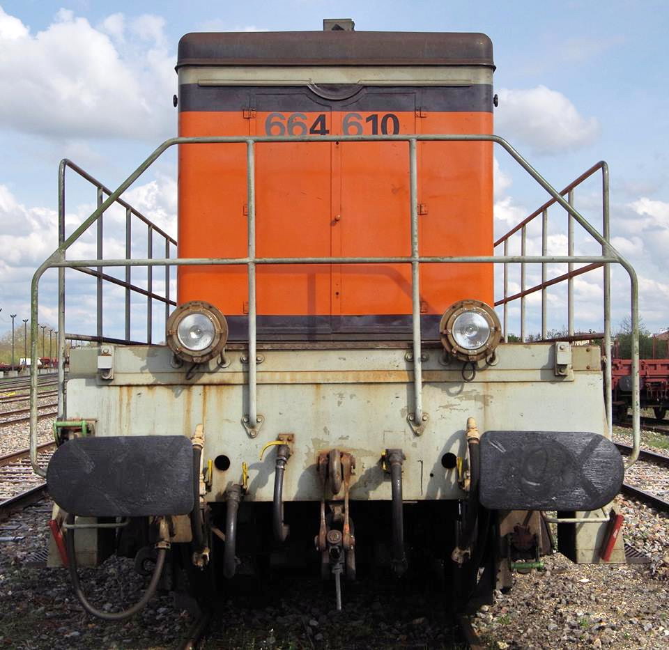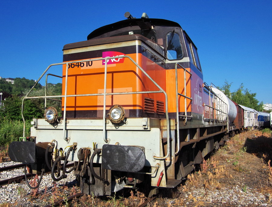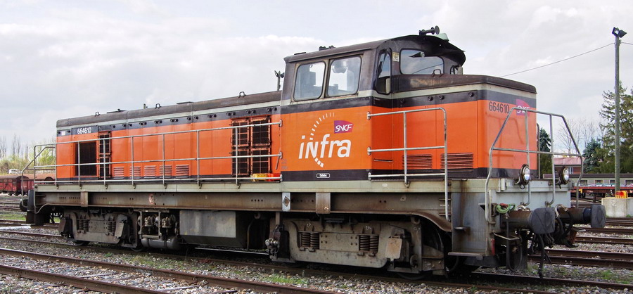 Voici la 6 64610 Infra ex 63698 mise en service le 23-04-1954 en livrée Arzens avec le logo Infra