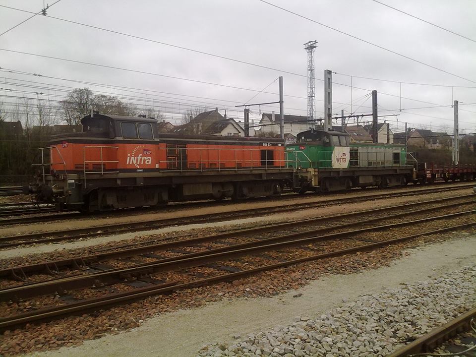 Traction assuré par une 63000 et une pousse de deux machines (664631 Arzens et 664635 ex fret) dont voici les photos