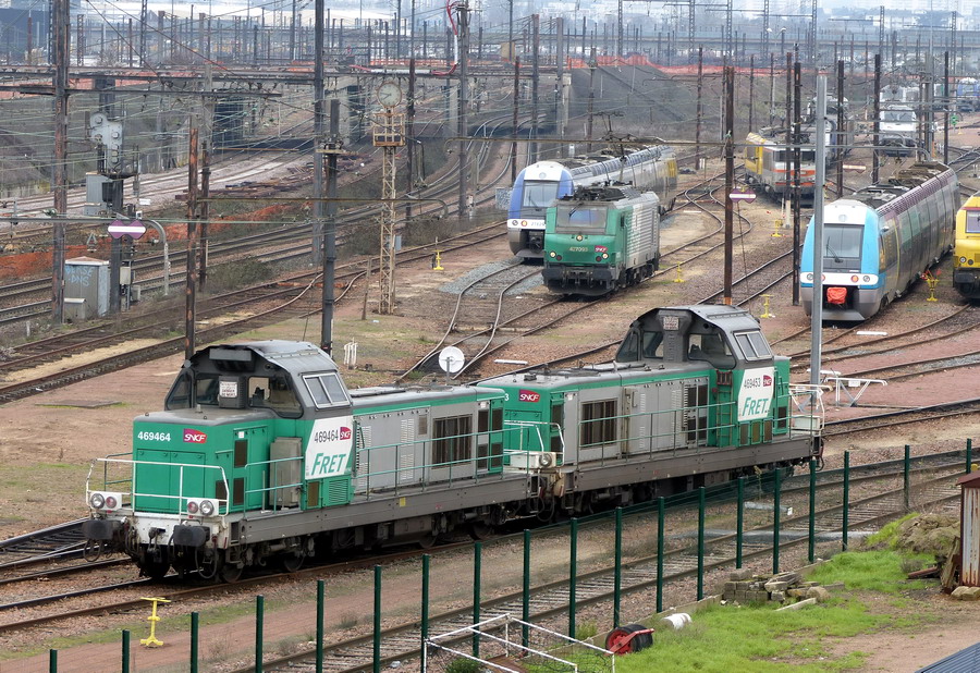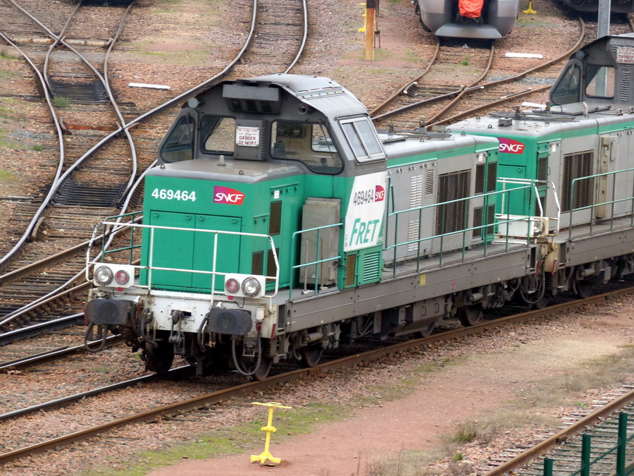 Voici la 469464 Infra pas de logo en livrée Fret (ex 66464 mise en service le 12-04-1970) sur un train Mauzin