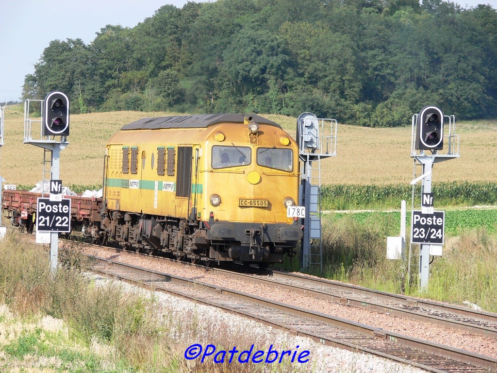 Voici deux photos de la CC 65505 en tête du train K1 (petit complément de ballast après dégarnissage) sur le RVB de Toulouse - Montlaur.